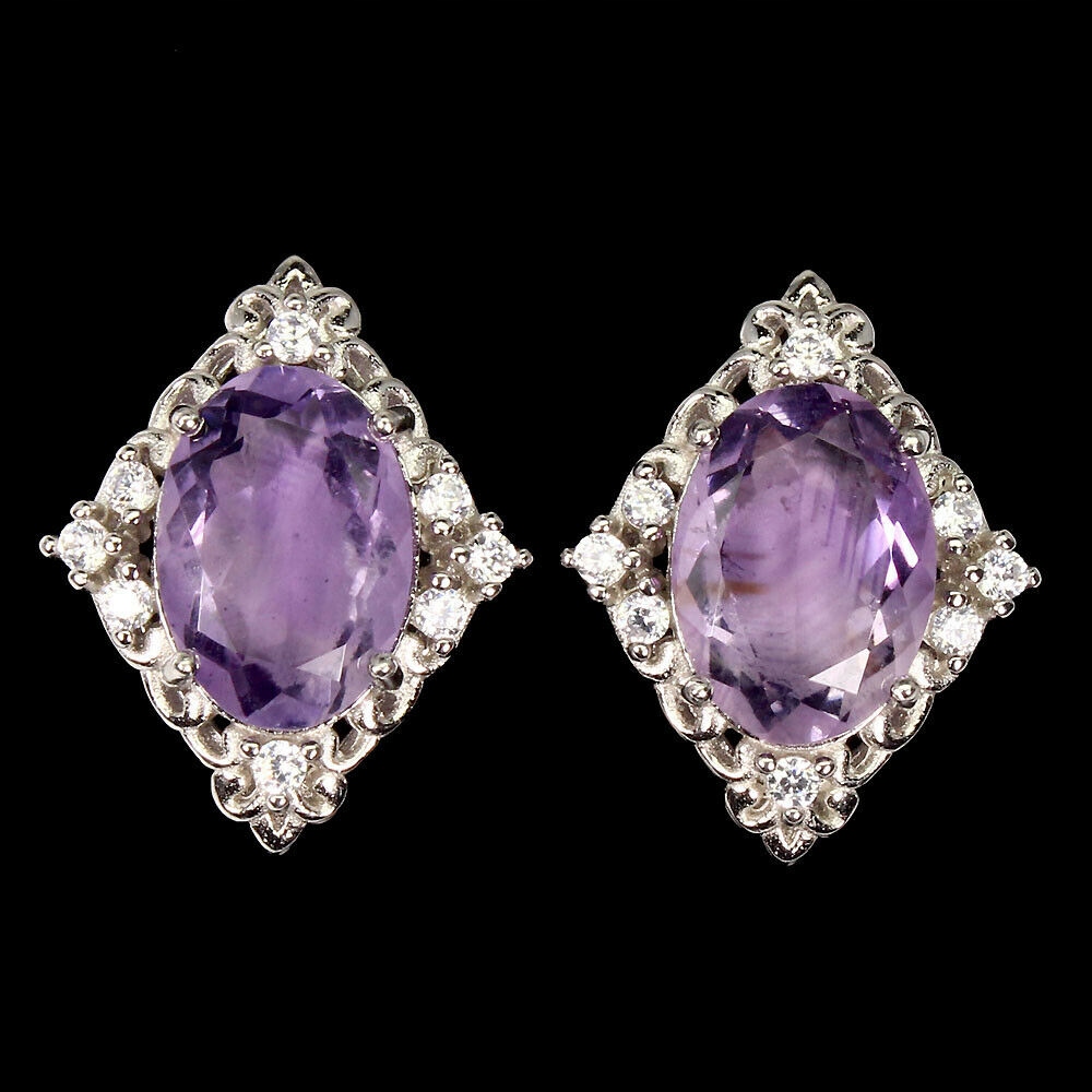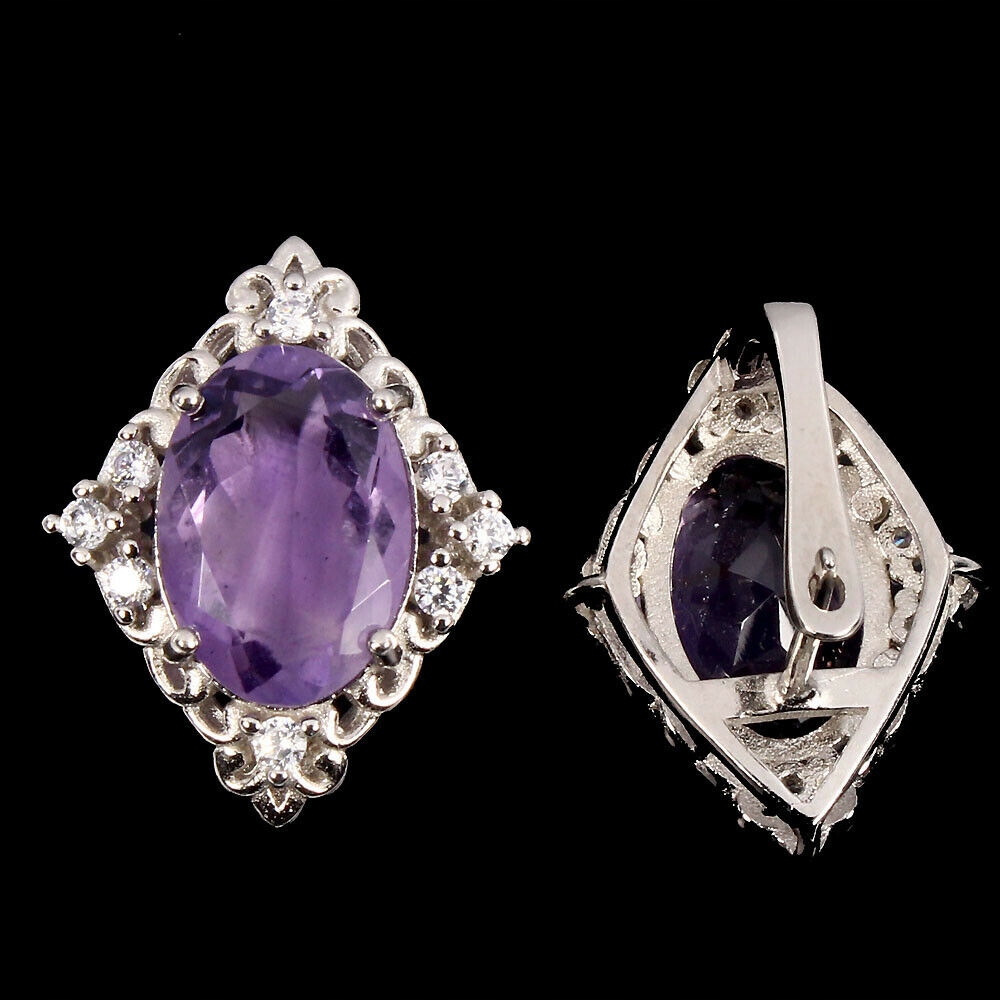 Silberohrringe 925 Zirkonia natürliche Amethyste 8