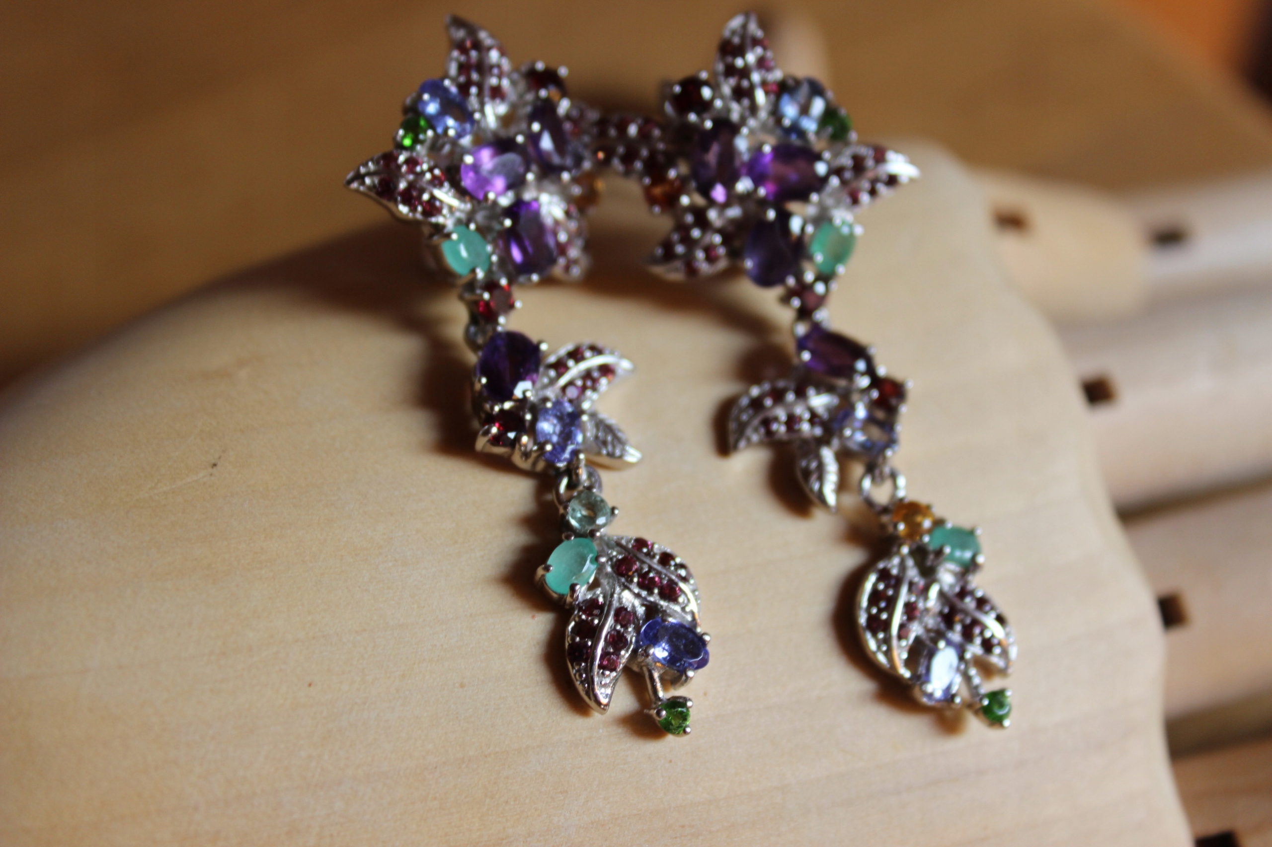 Silberohrringe Amethyste Tansanit Smaragde