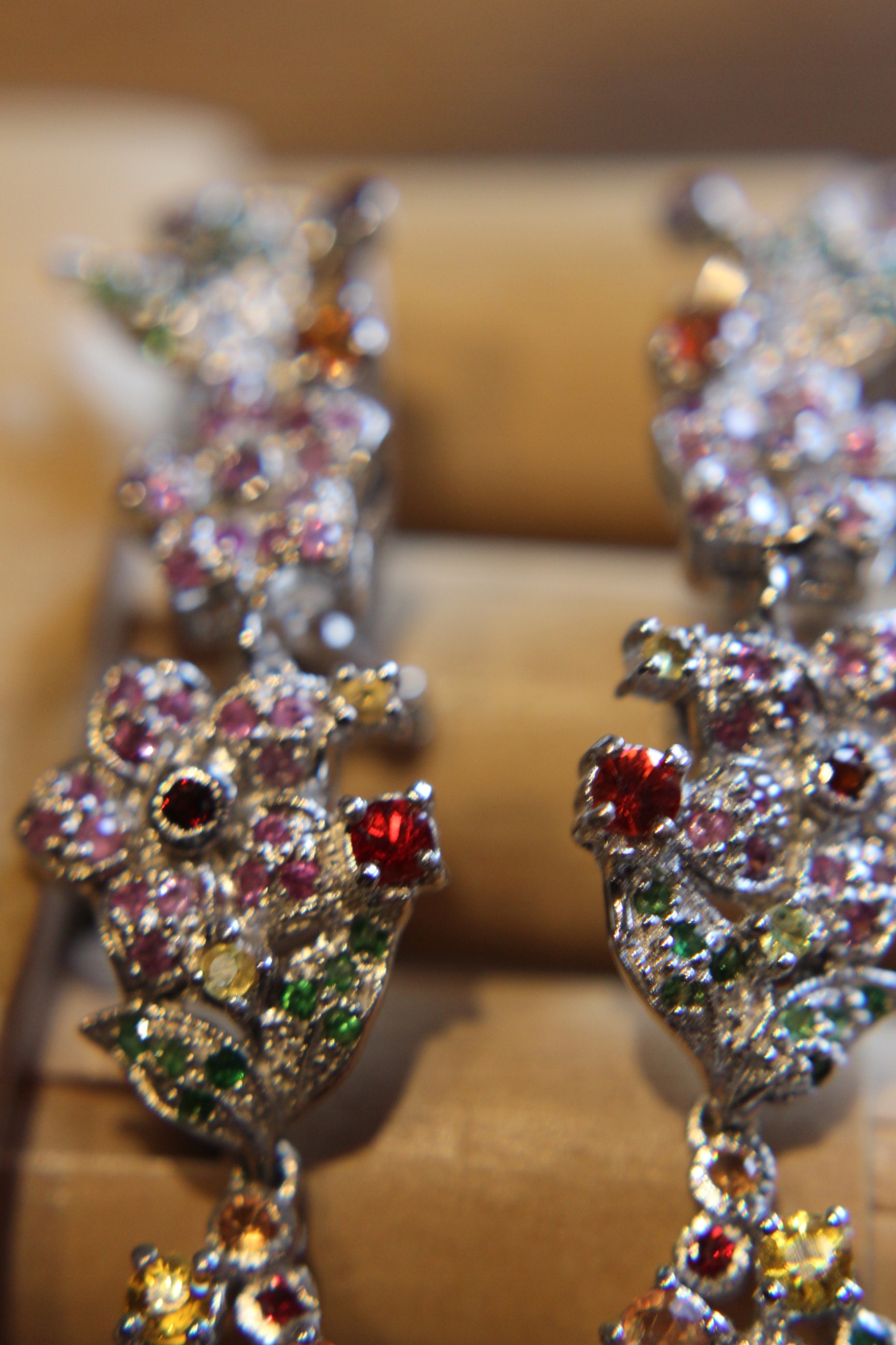 Ich verkaufe neu (ohne Etikett), vergoldet mit 14 Karat Weißgold, 925er Silberohrringe mit natürlichen Saphiren (pink, gelb, orange, rot), Citrin und Diopsid.