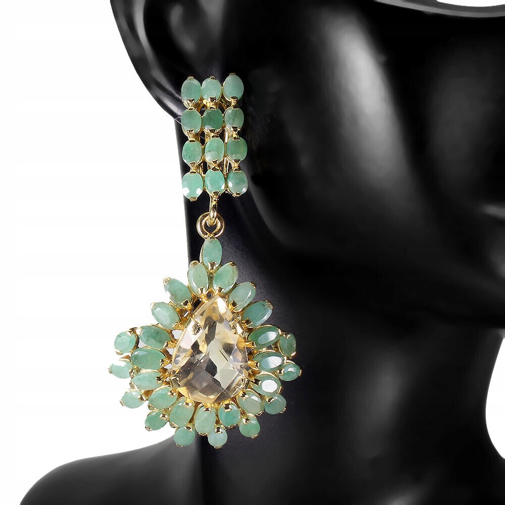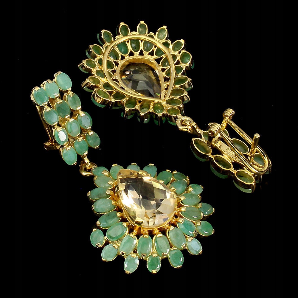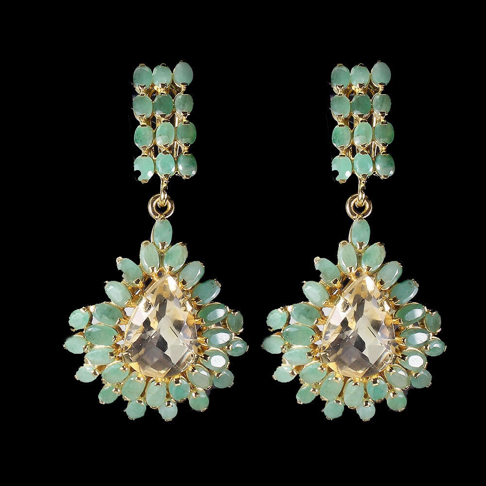 Wir bieten Ihnen neue, gelb 14K vergoldete Silber-925-Ohrringe mit natürlichen Citrin und Smaragden an.