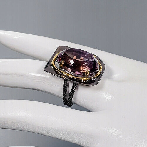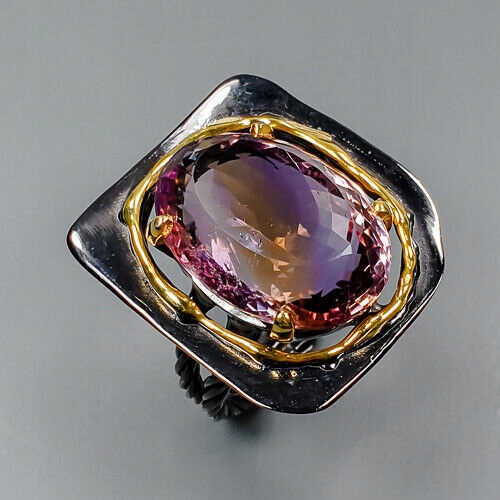 Wir bieten Ihnen einen neuen, schwarz rhodinierten und gelb vergoldeten Silber - 925 - Ring mit natürlichem Ametrin an.