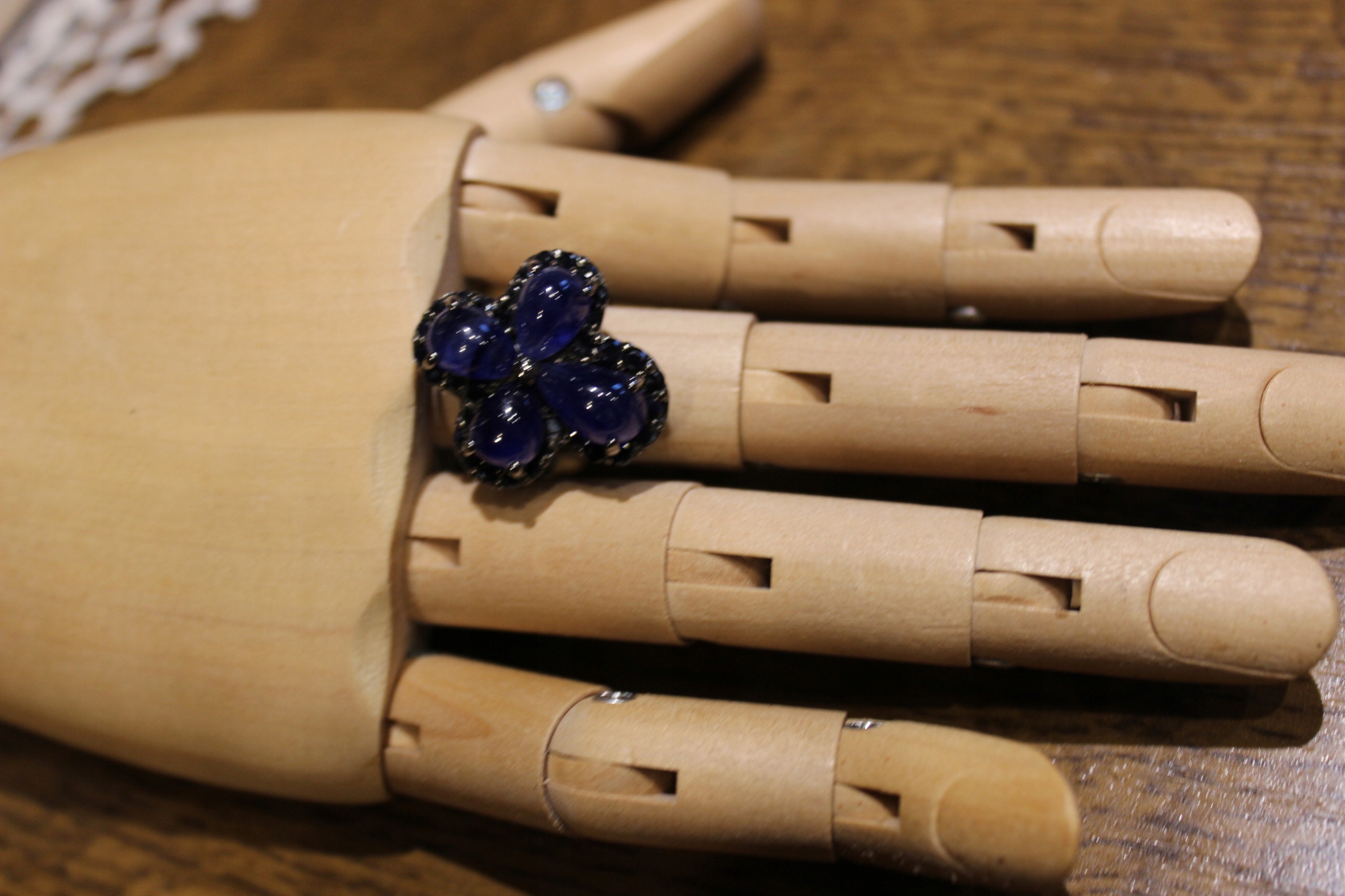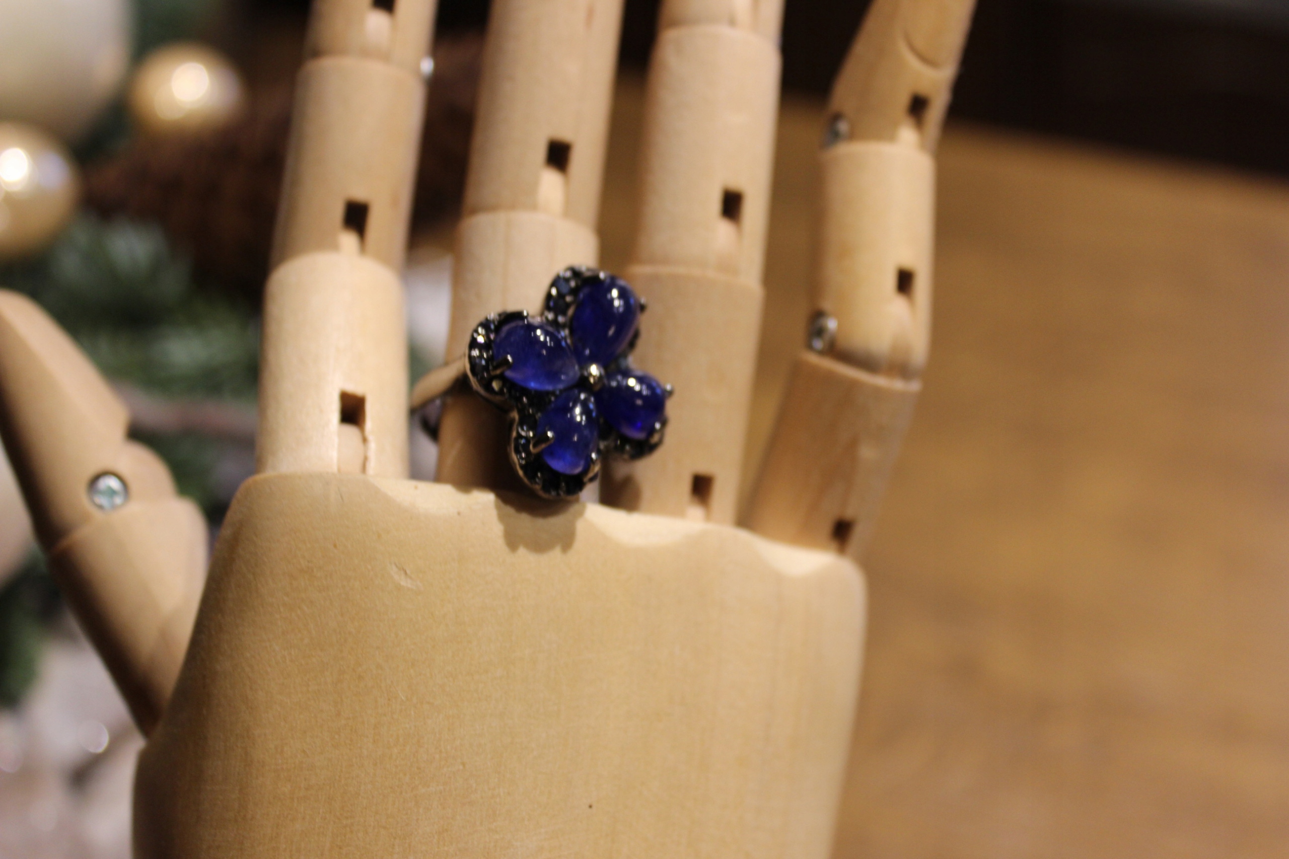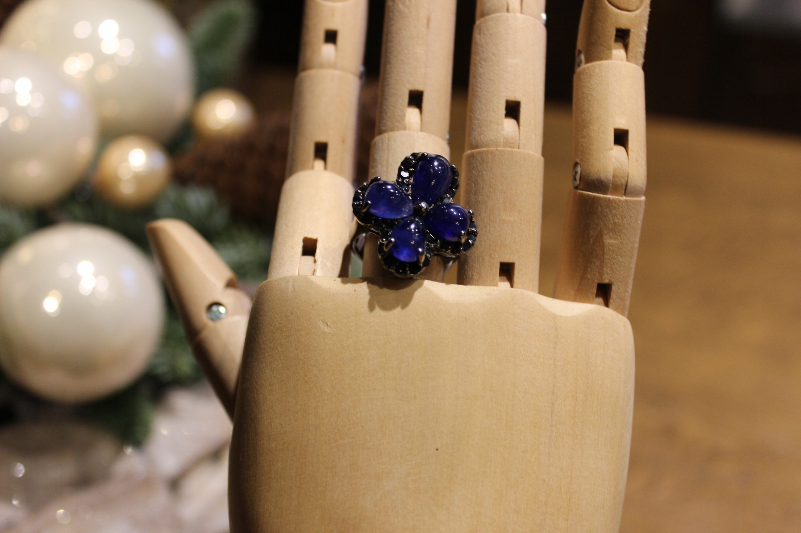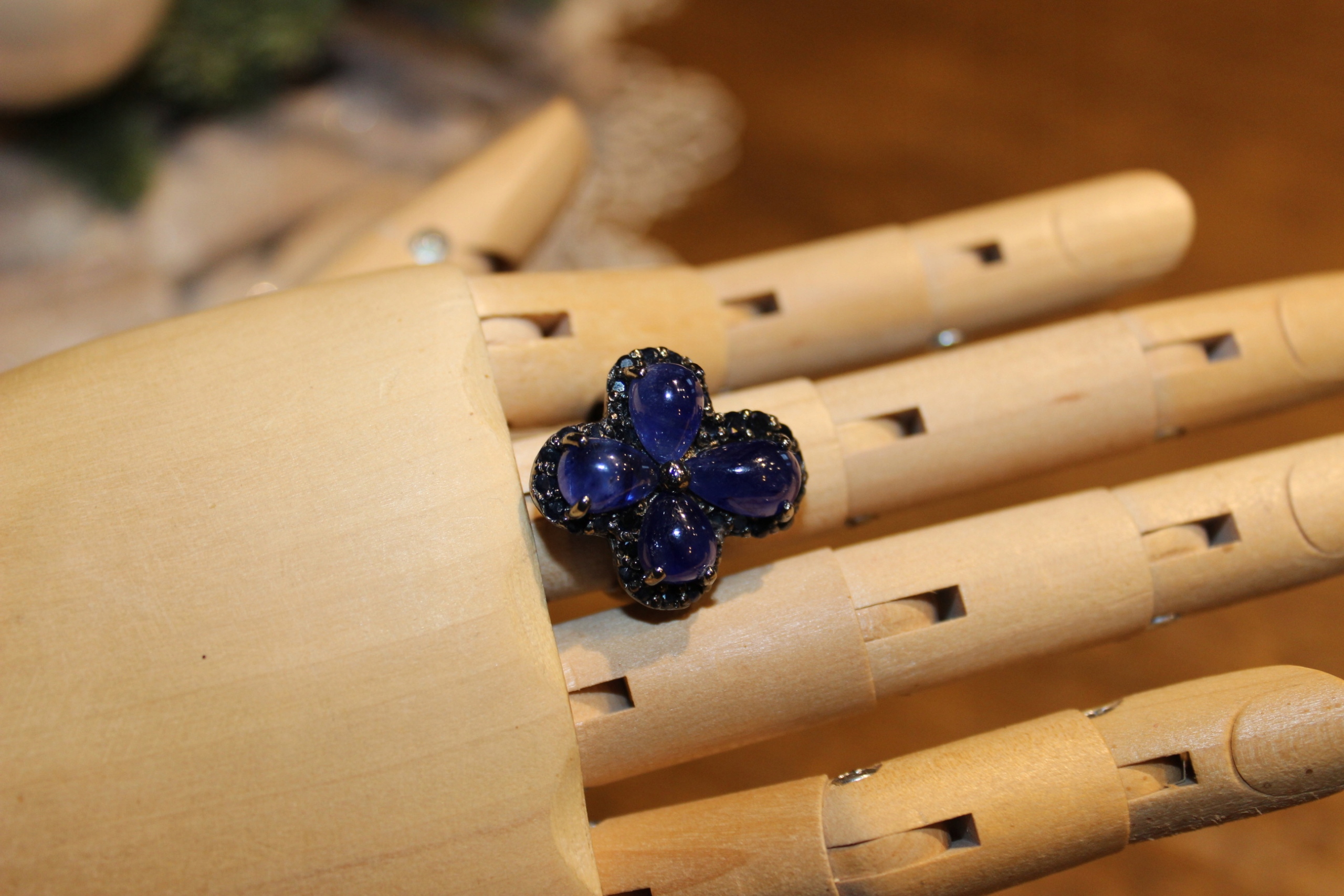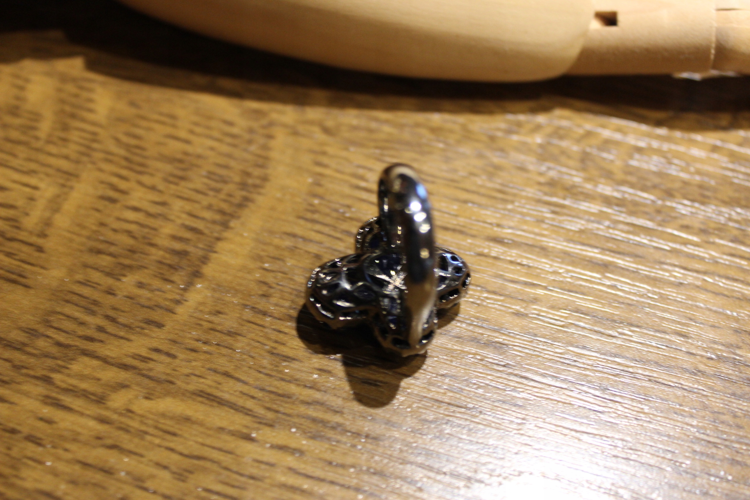 Ich verkaufe einen neuen (ohne Etikett) rhodinierten schwarzen, silbernen 925er Ring mit natürlichen Saphiren.