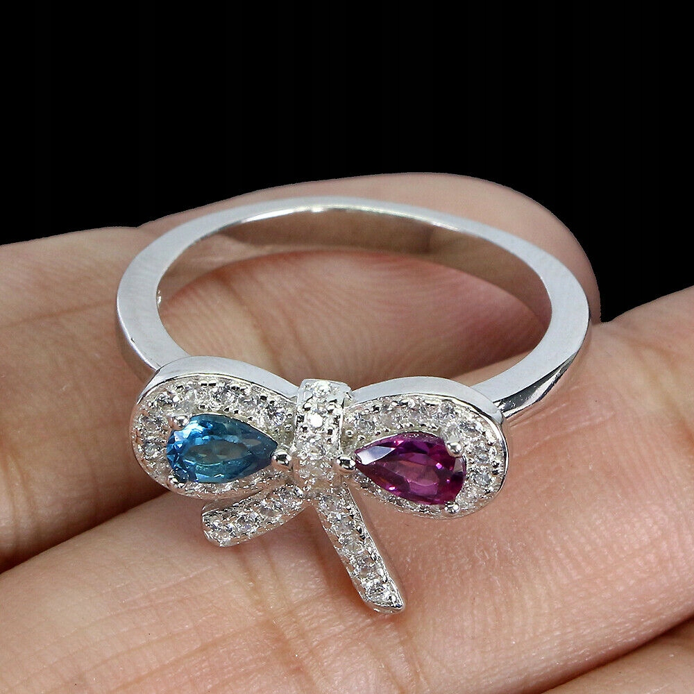 Wir bieten Ihnen einen neuen, 14 Karat Weißgold, Silber - 925er Feinheitsring mit natürlichem Granat (Rhodolith) und London Blue Topas und Zirkonia an.