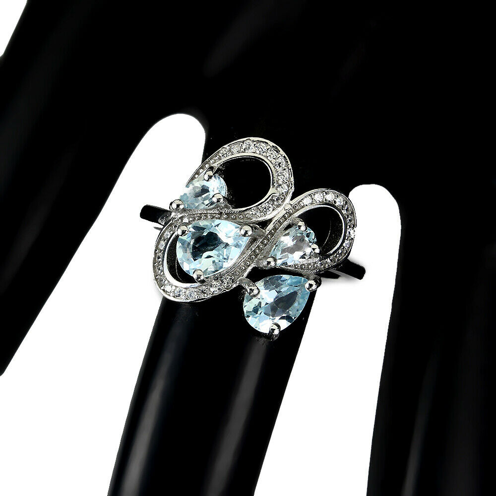 Wir bieten Ihnen einen neuen Ring aus 14 Karat Weißgold, Silber - 925 mit natürlichem Sky Blue Topas und Zirkonia an.
