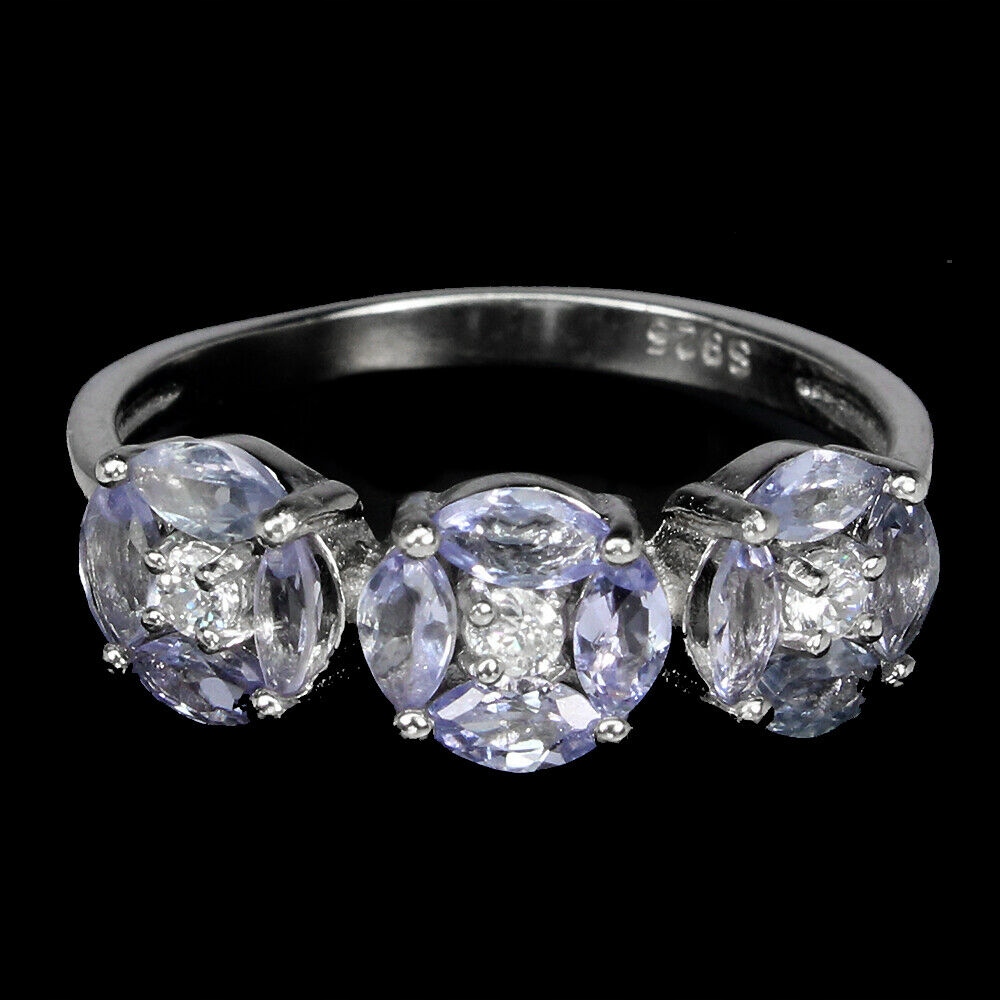 Wir bieten Ihnen einen neuen Ring aus 14 Karat Weißgold, Silber und 925 mit natürlichen Tansaniten und weißem Topas an.