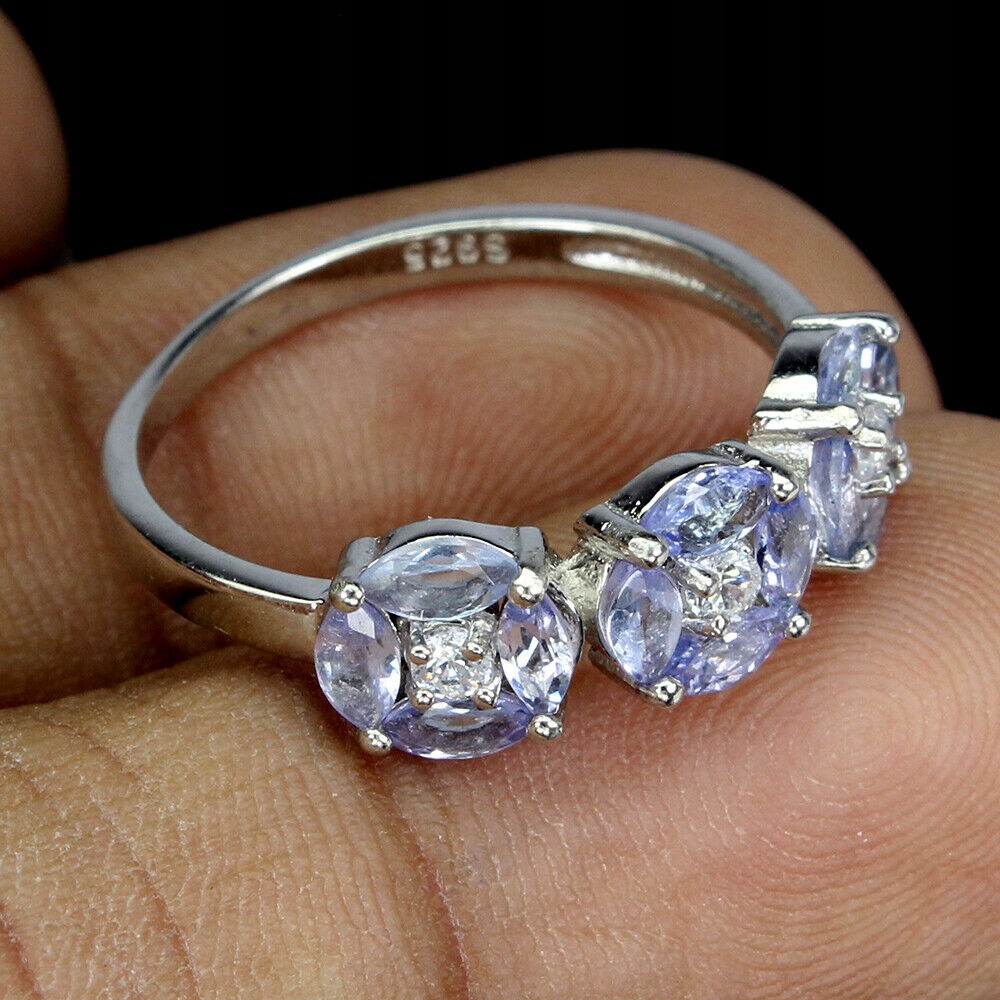 Silberring mit Tansaniten und weißem Topas Größe 14