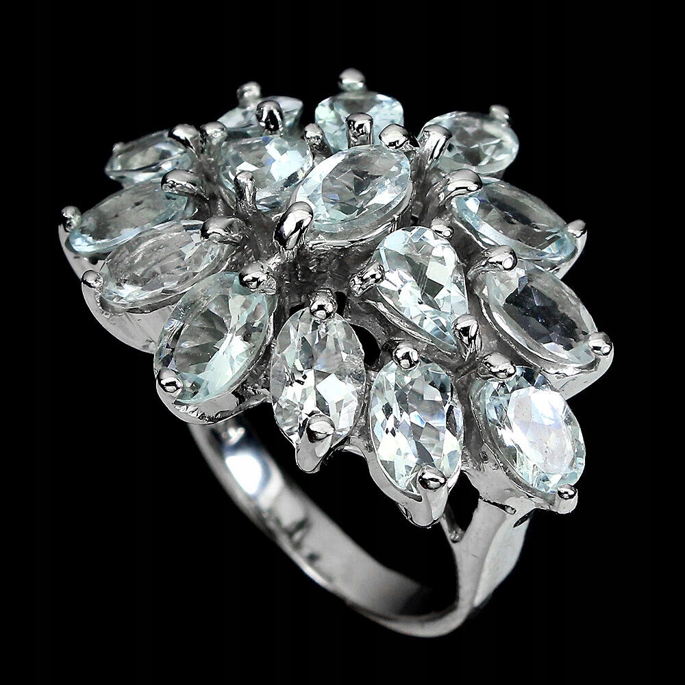 Silberring mit natürlichen Aquamarinen Größe 13,5