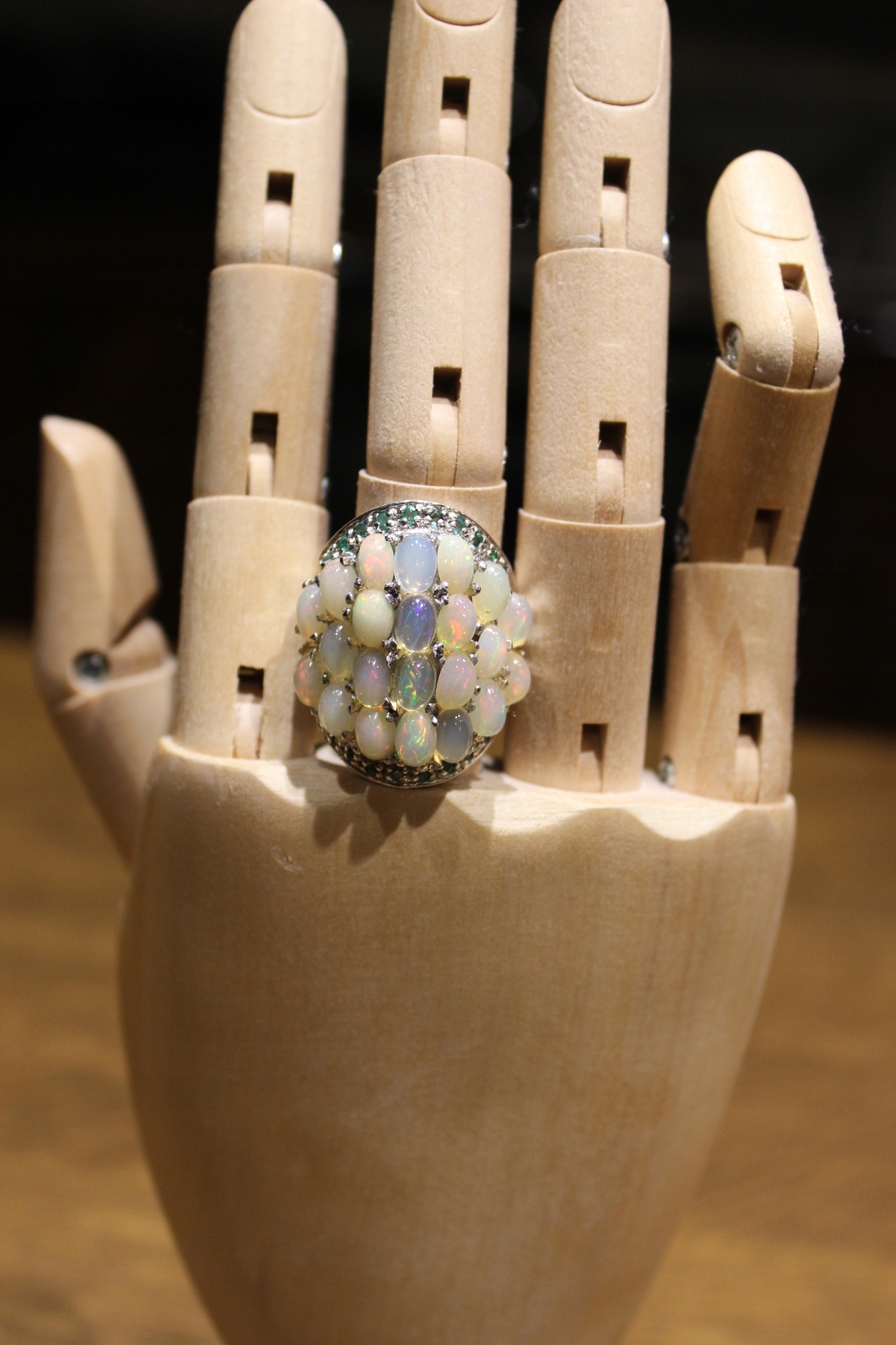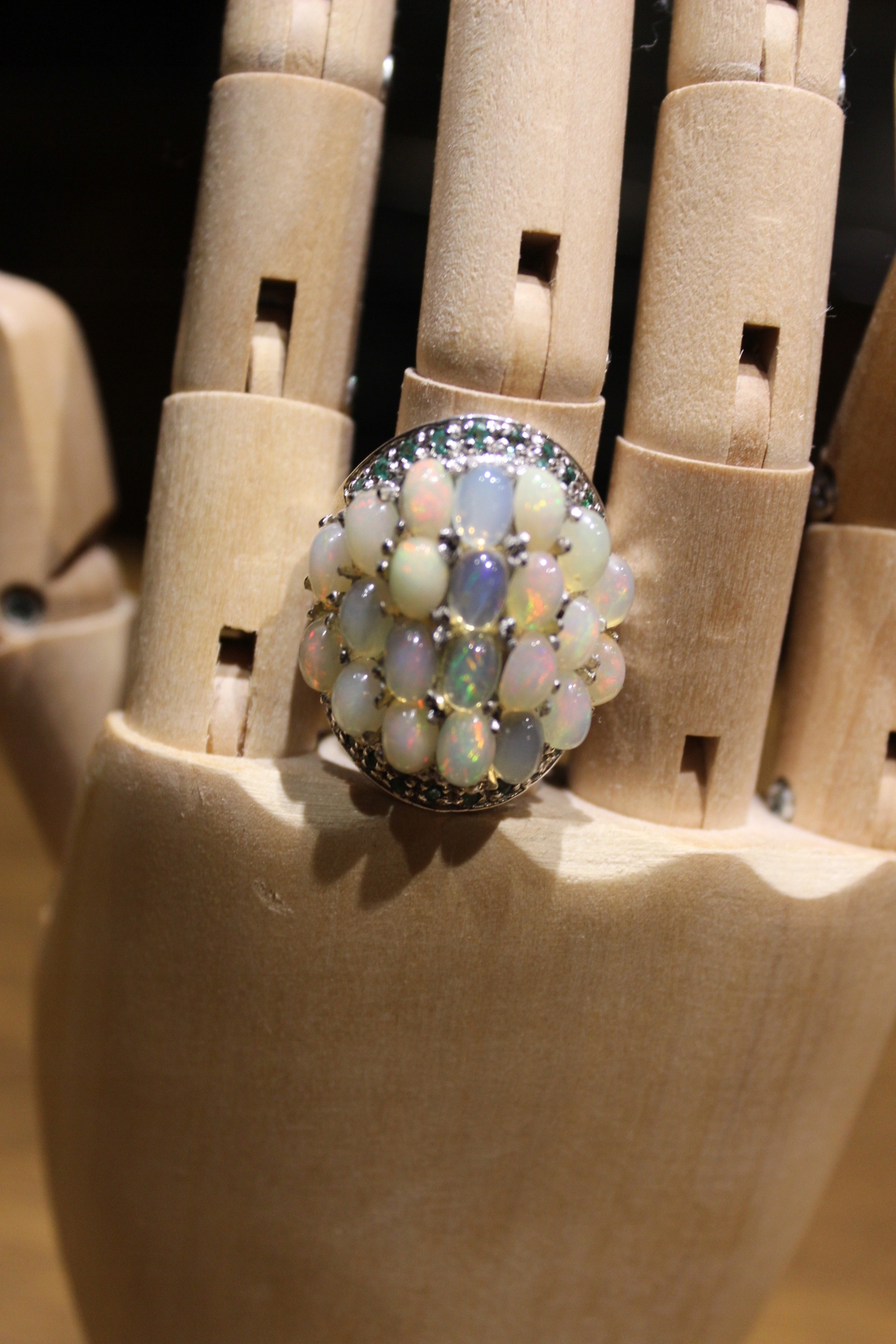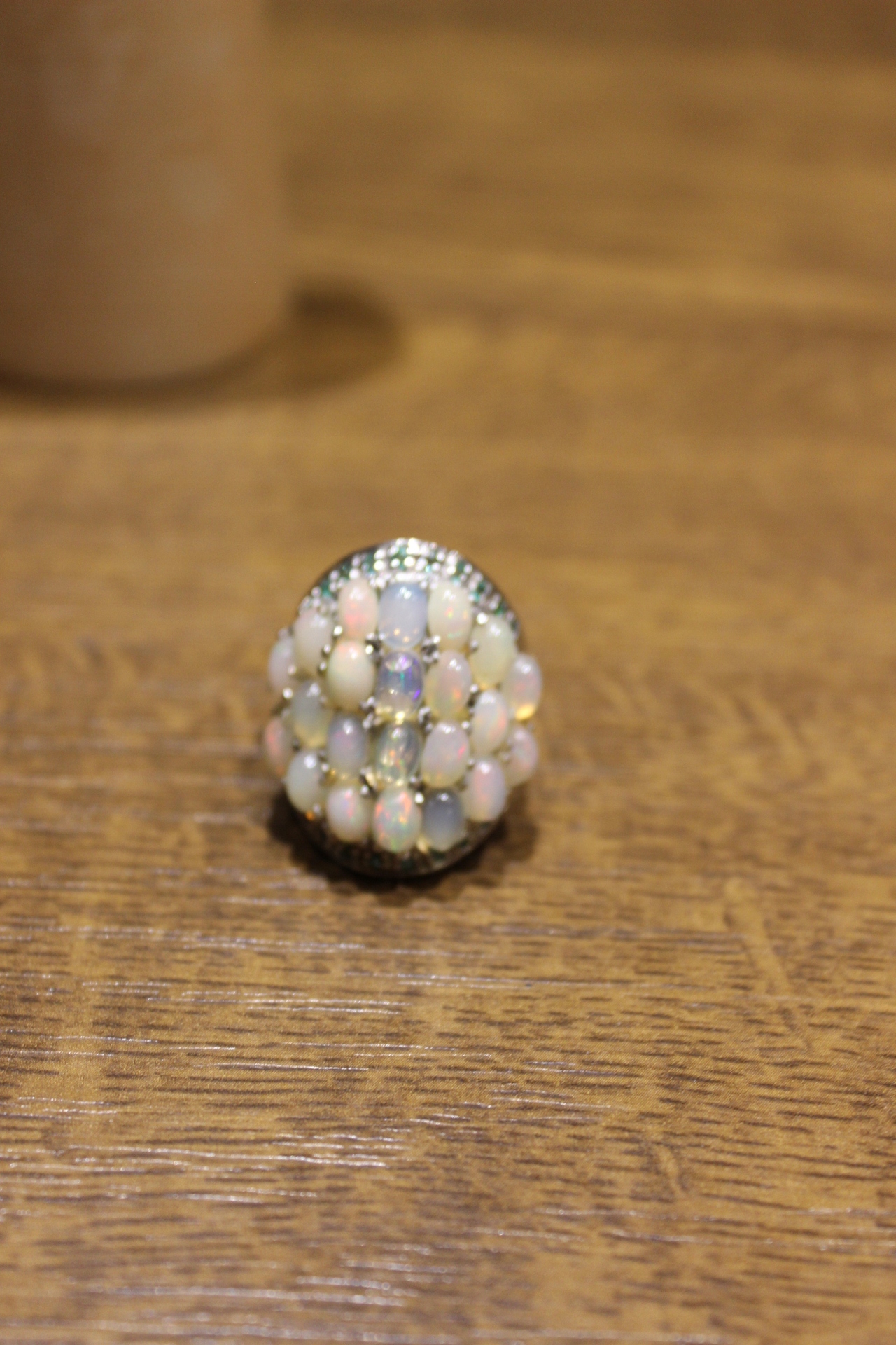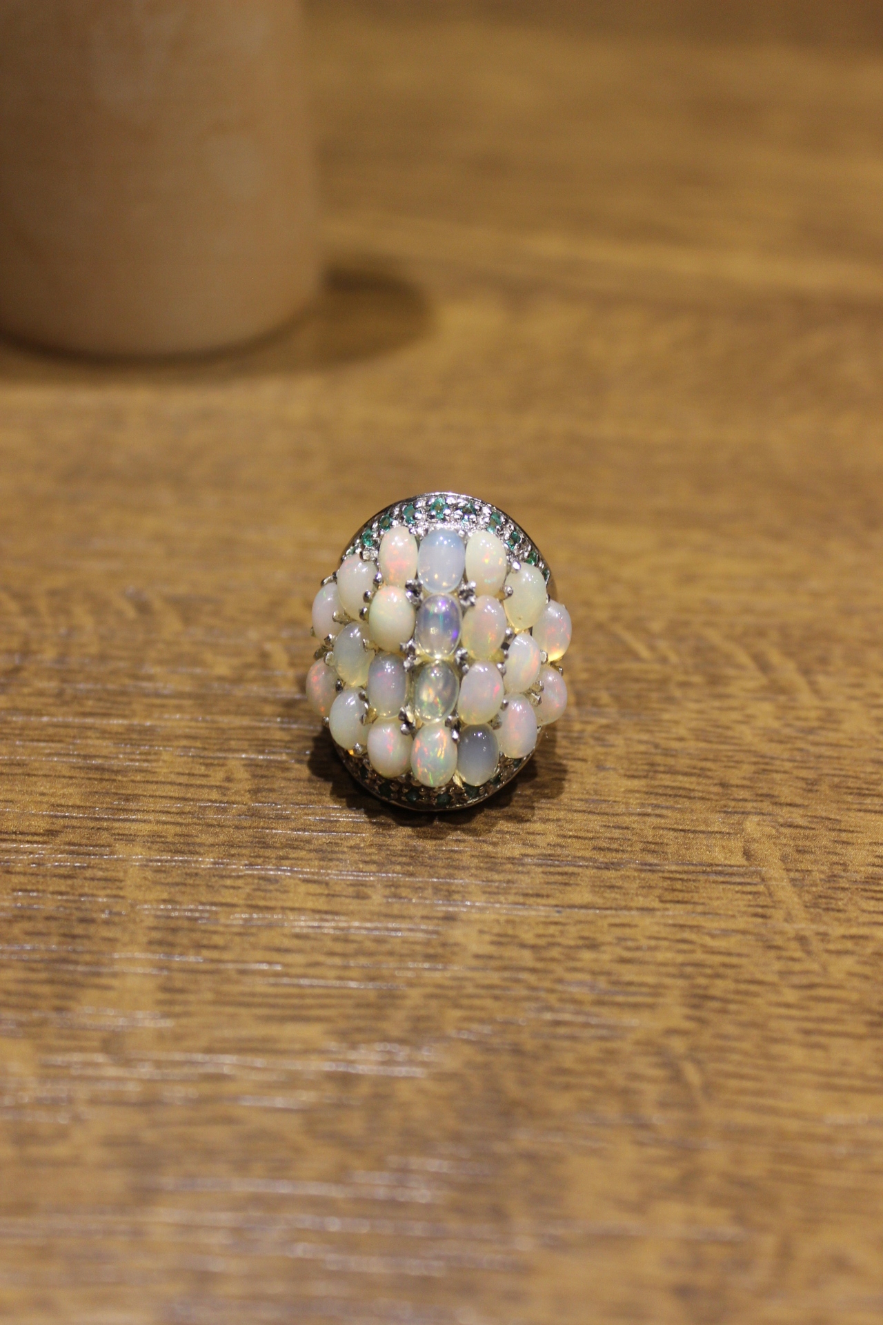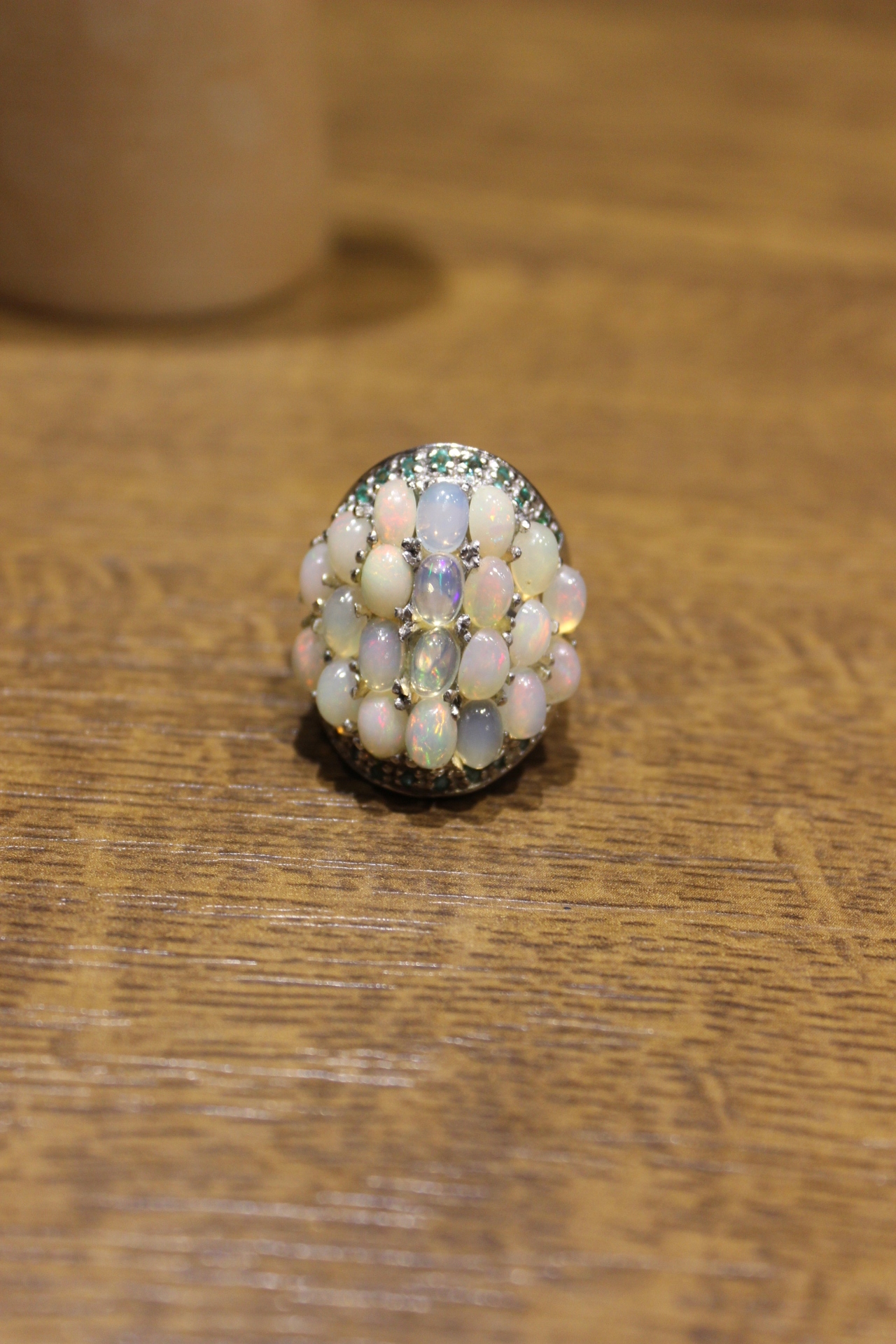 Ich verkaufe einen neuen (ohne Etikett), vergoldet mit Weißgold 14K - 925 Ring mit natürlichen Opalen und Diopsiden.