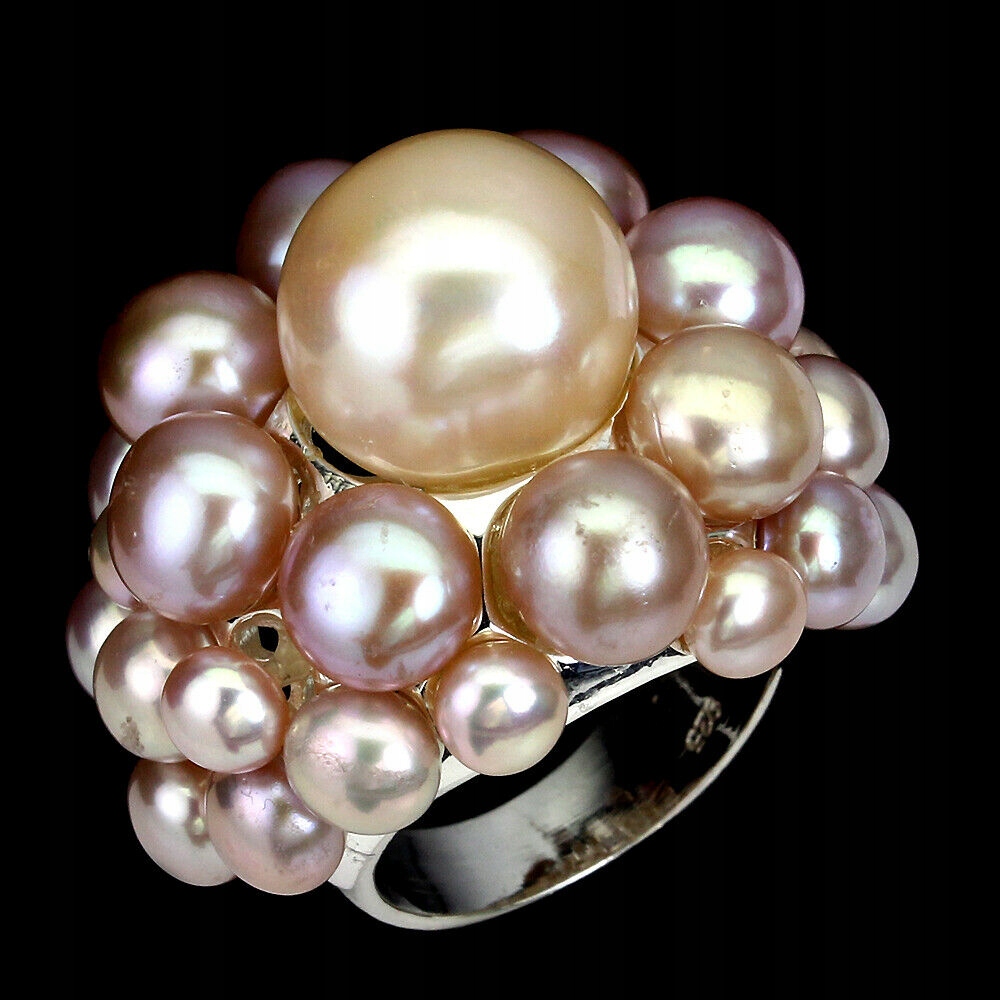 Wir bieten Ihnen einen neuen, weiß rhodinierten 925er Silberring mit natürlichen cremefarbenen Perlen an.