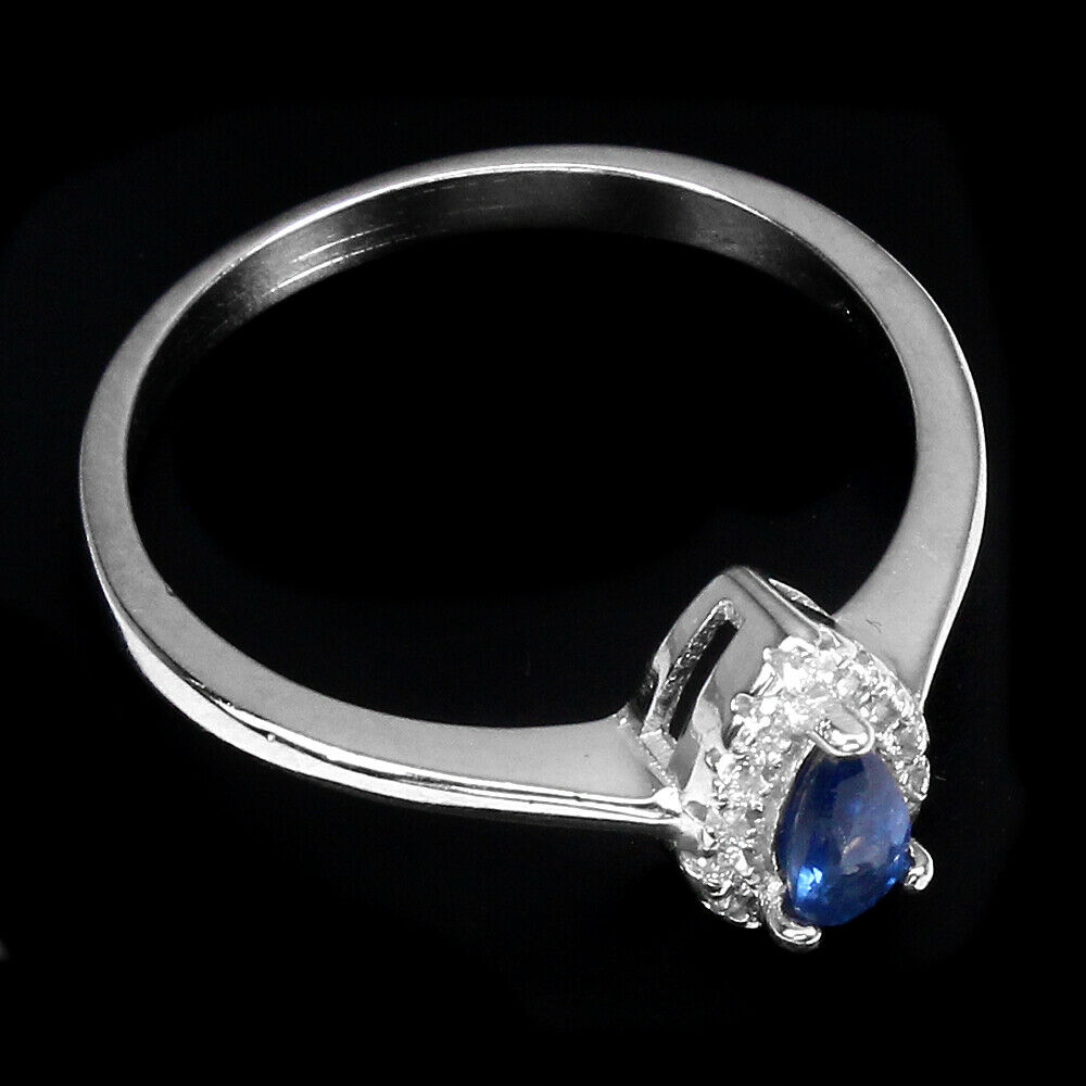 Ich verkaufe einen neuen (ohne Etikett), vergoldet mit 14 Karat Weißgold, Silber - 925er Ring mit natürlichem blauem Saphir und Zirkonia.