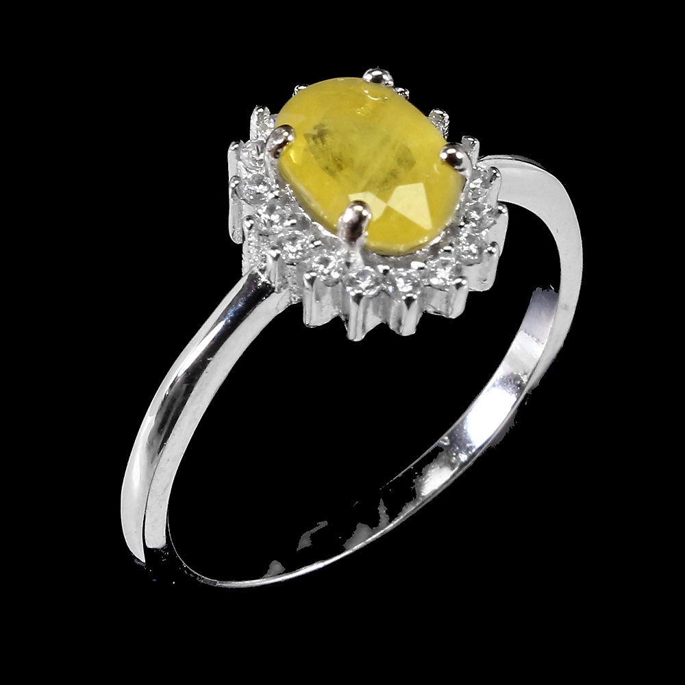 Silberring natürlicher gelber Saphir Größe 14,5
