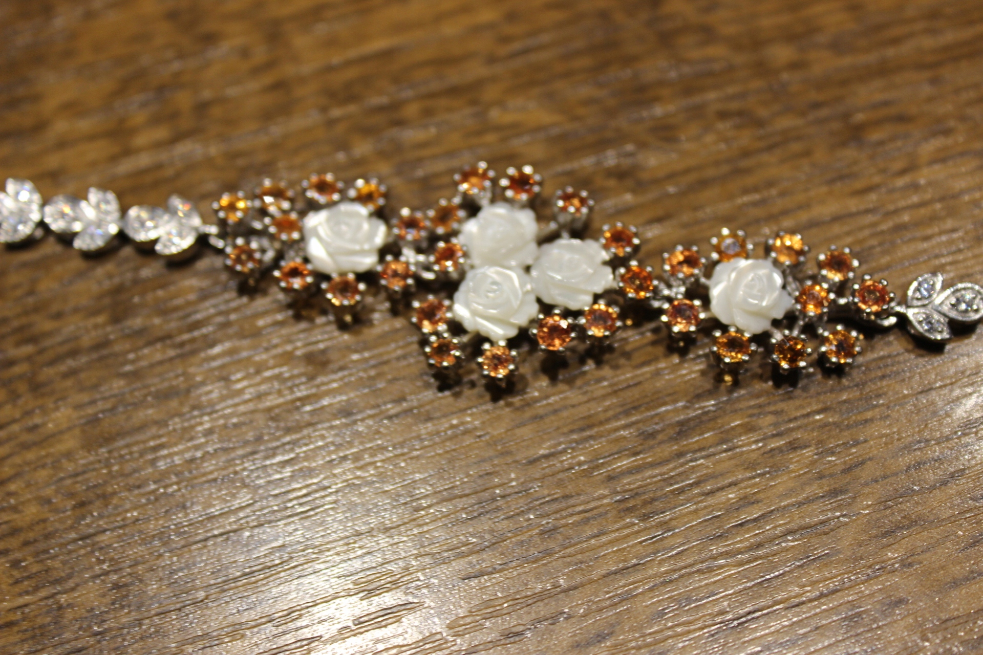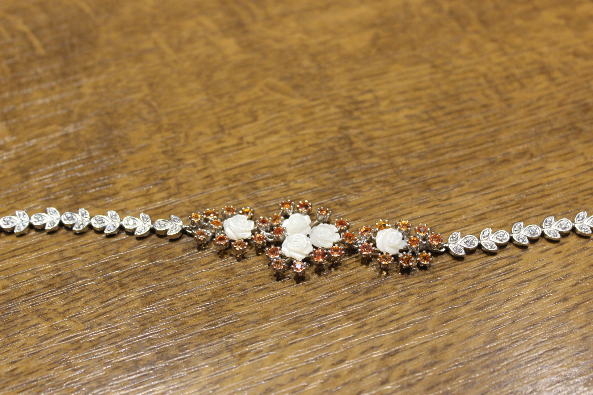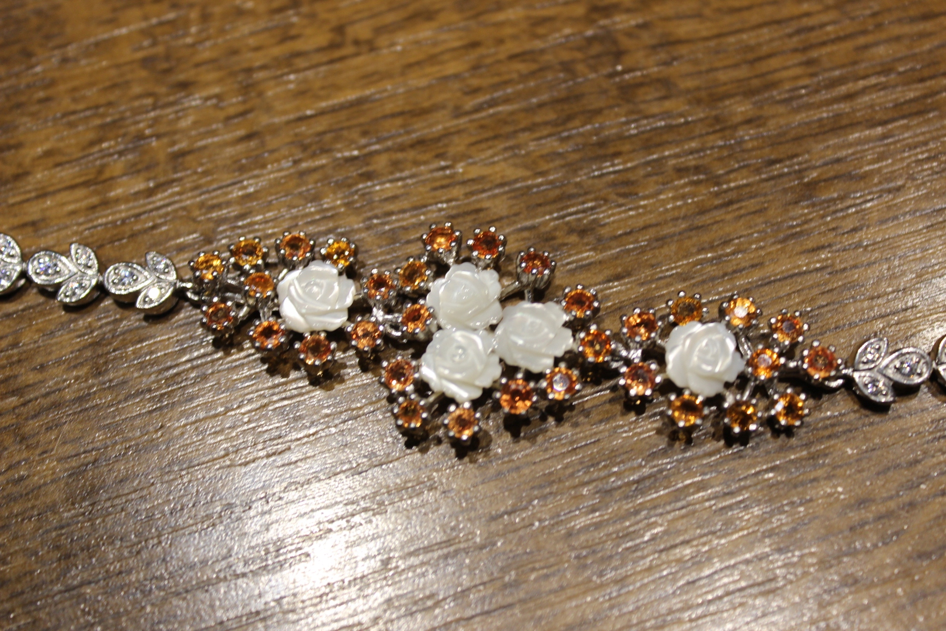Ich verkaufe ein neues (ohne Etikett), vergoldetes Armband aus 14 Karat Gold - 925 Silber mit natürlichen Songea-Saphiren und Perlmutt.