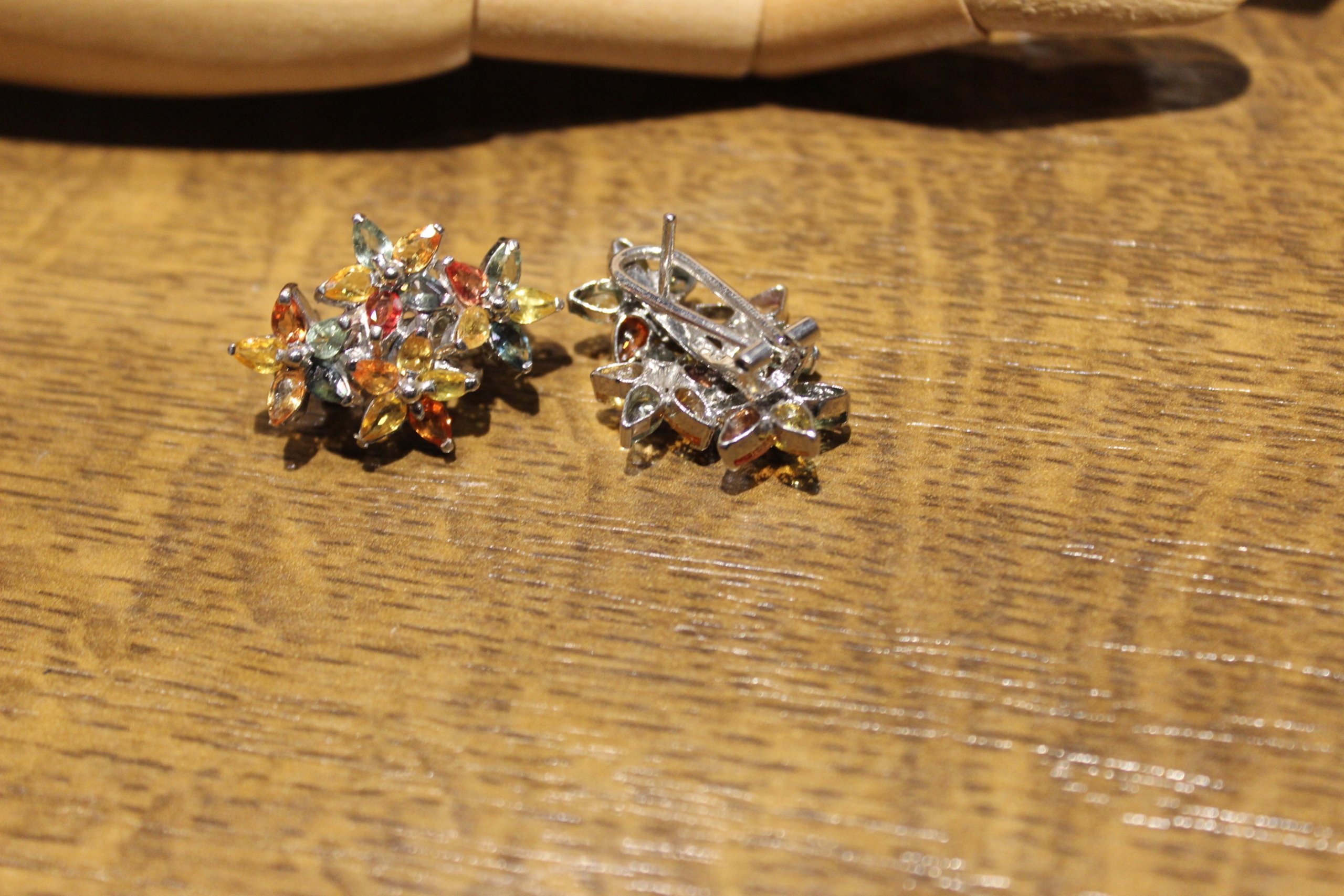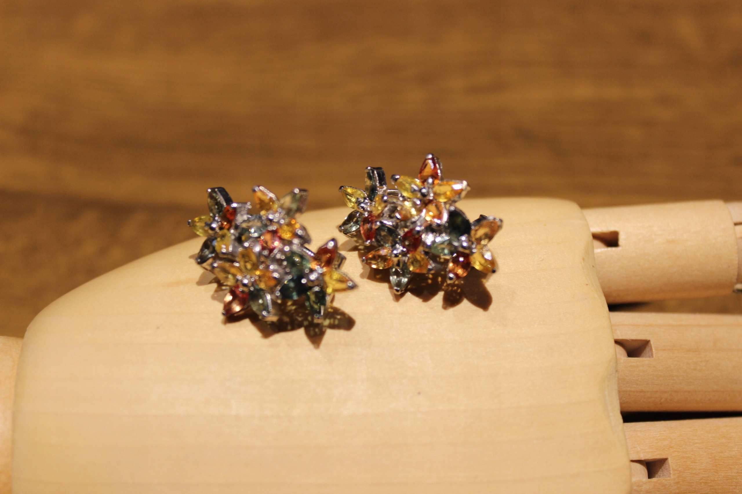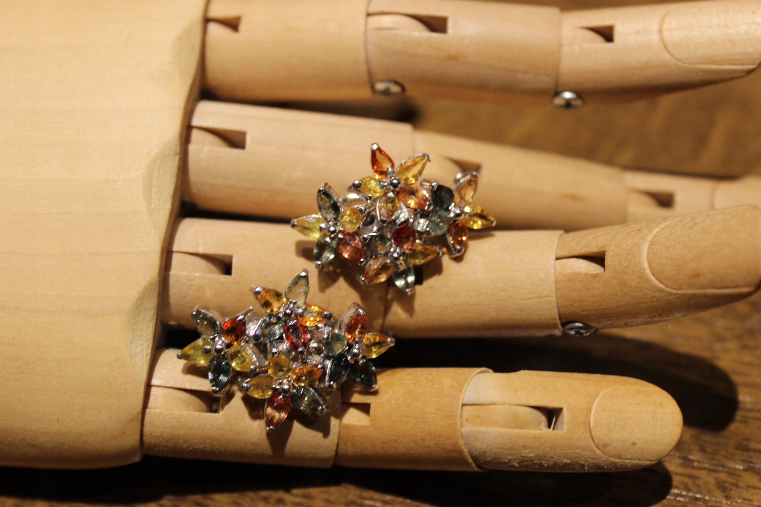 Ich verkaufe neu (ohne Etikett), weiß vergoldete Silber 925 Ohrringe mit natürlichen Songea Padparadja und grünen Saphiren.