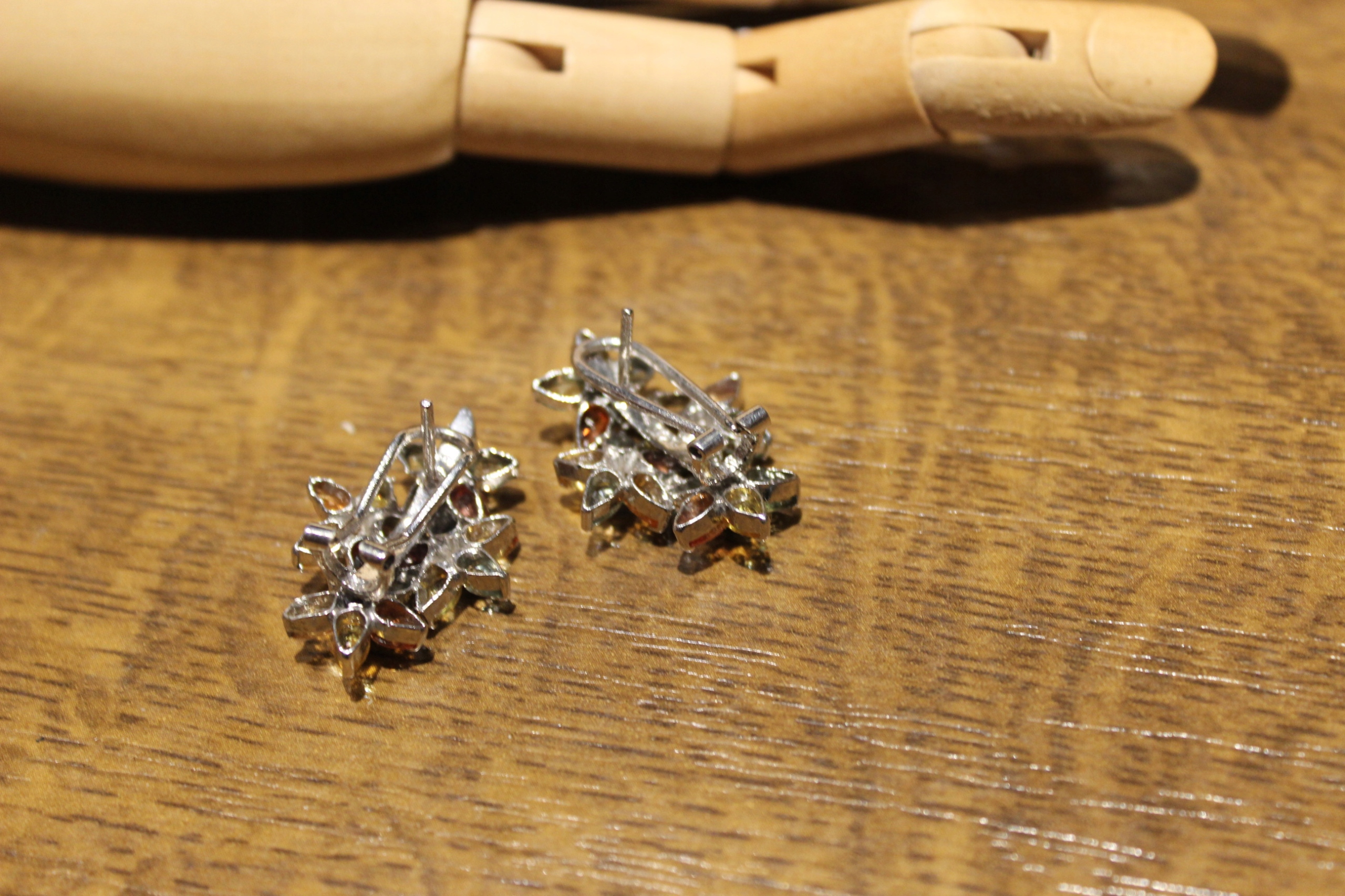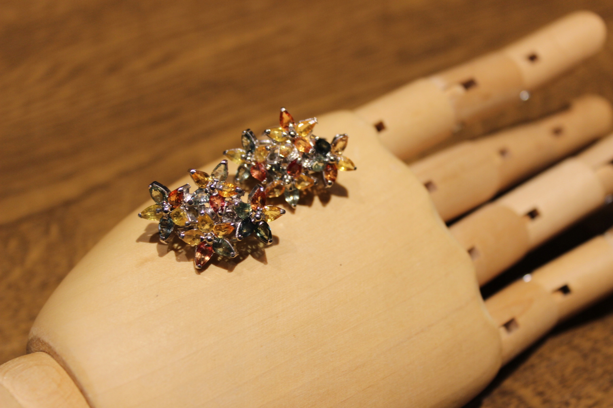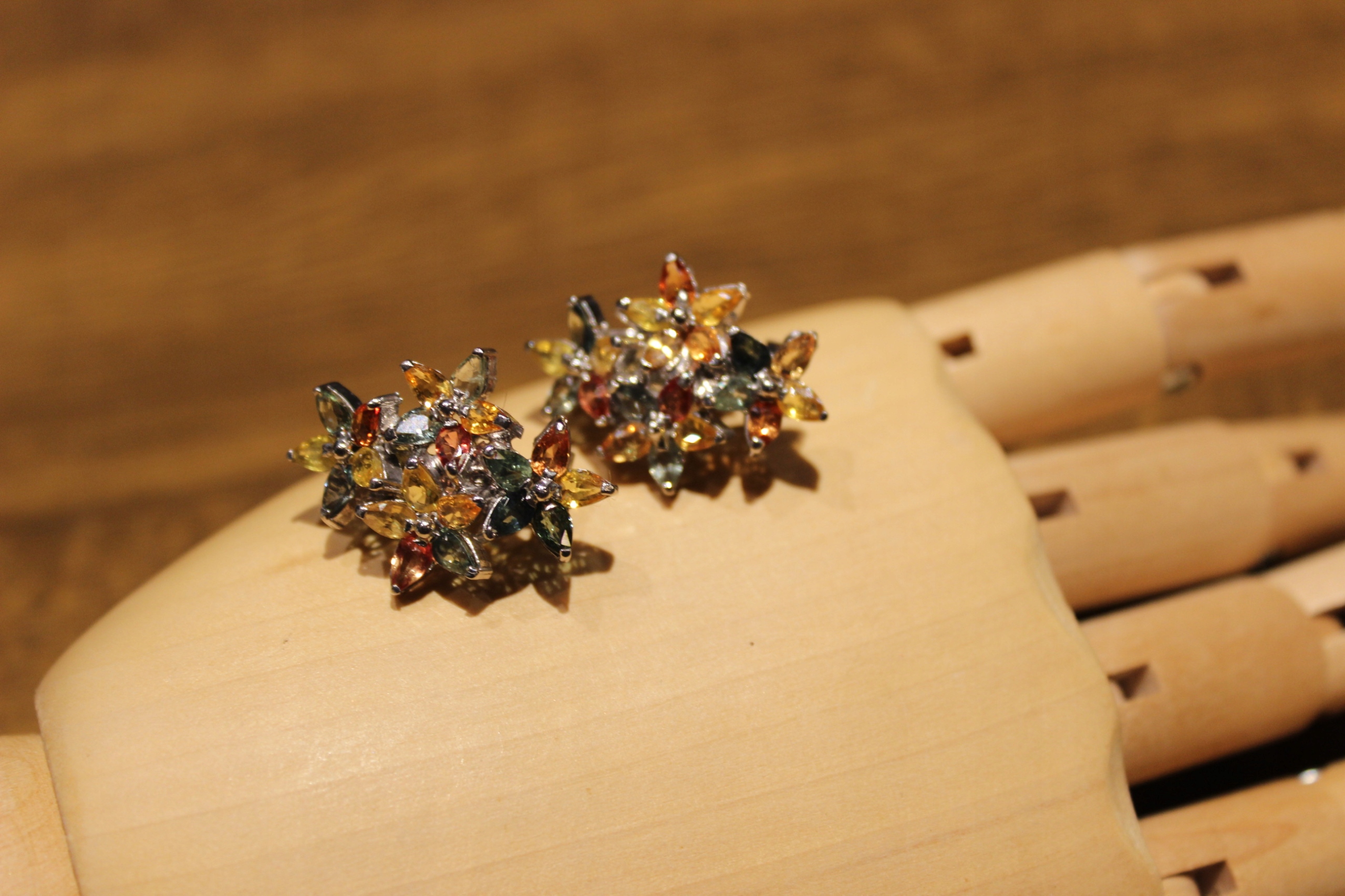 Ich verkaufe neu (ohne Etikett), weiß vergoldete Silber 925 Ohrringe mit natürlichen Songea Padparadja und grünen Saphiren.