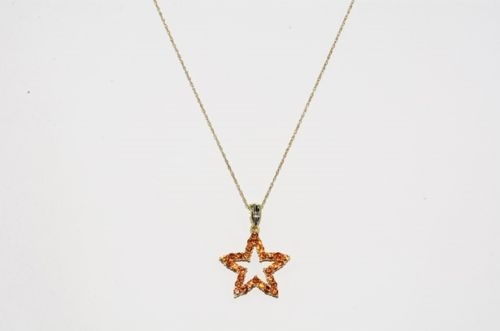 Ich verkaufe eine neue (ohne Etikett) 10 Karat Gelbgold-Sternkette mit einem winzigen natürlichen Diamanten (0,01, Reinheit I, Farbe K) und winzigen synthetischen Saphiren in einer schönen Farbe (30 Stück, ca. 0,60 ct). Die Kette ist zertifiziert.
