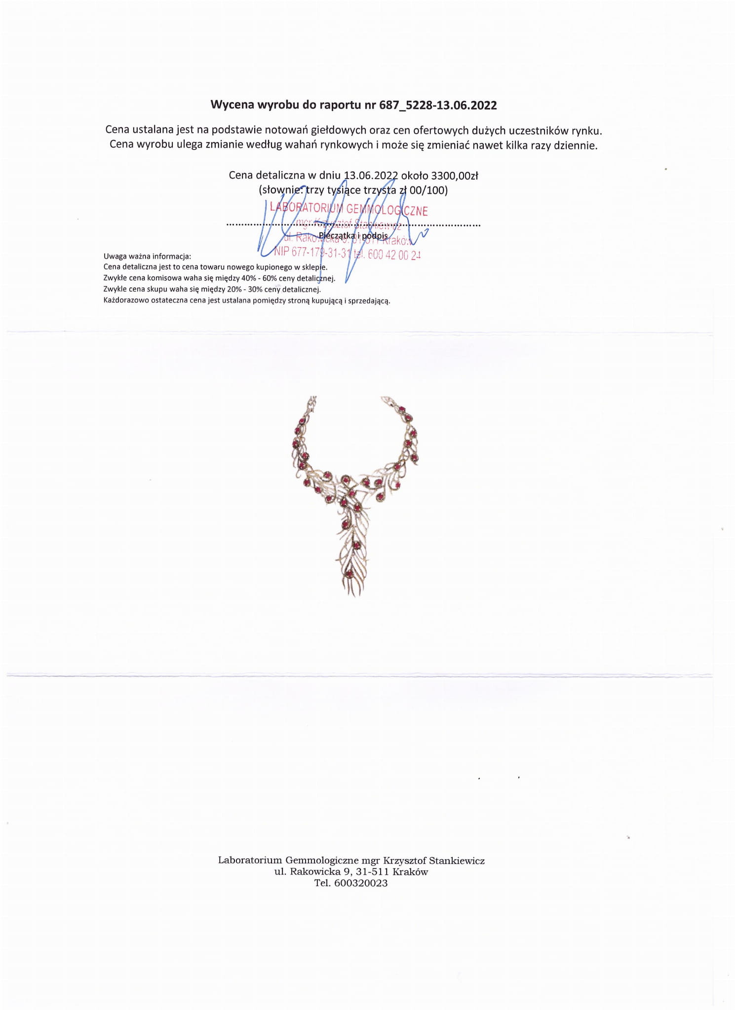 Schön, stattlich. Passende Ohrringe können in meiner anderen Auktion erworben werden. Die Halskette ist zertifiziert und hat einen Wert von 3.300 PLN.