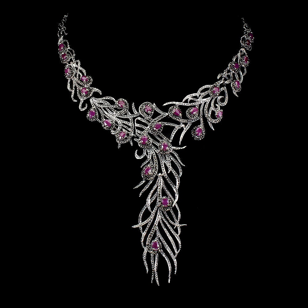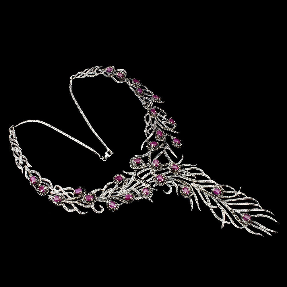 Ich verkaufe eine neue, Silber - Feinheit 925 (spektrometrisch ca. 0,905) Halskette mit natürlichen Rubinen und natürlichen Pyriten (Markasiten).