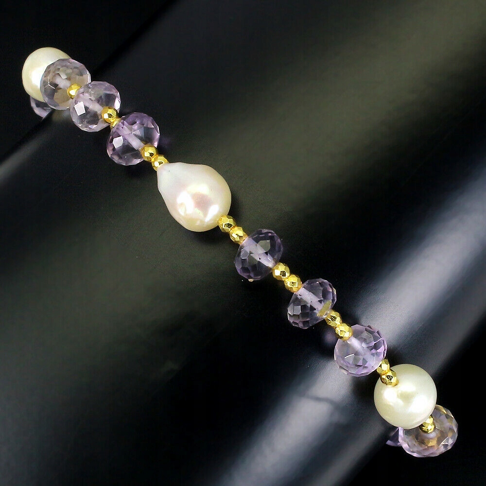 Wir bieten Ihnen ein neues Armband aus 14 Karat Gelbgold, Silber - 925 mit natürlichen Amethysten und Perlen an.