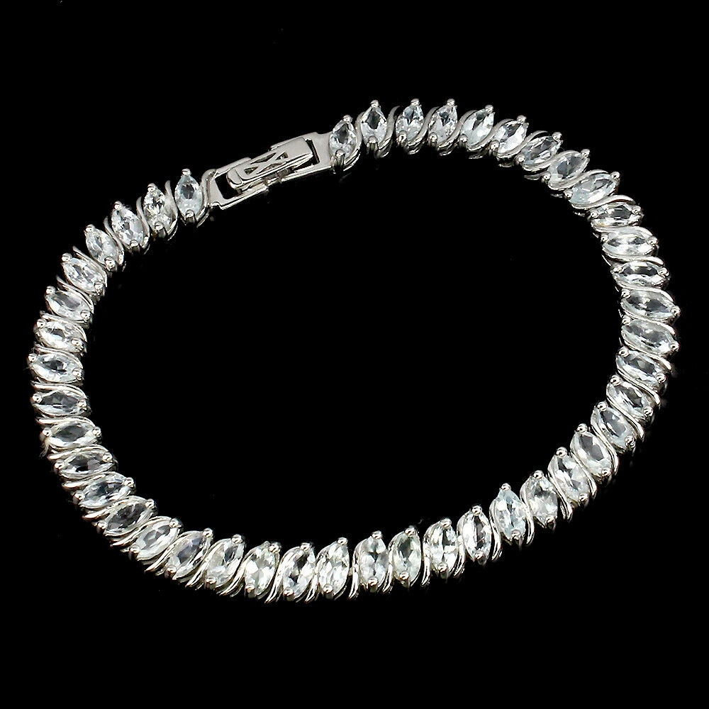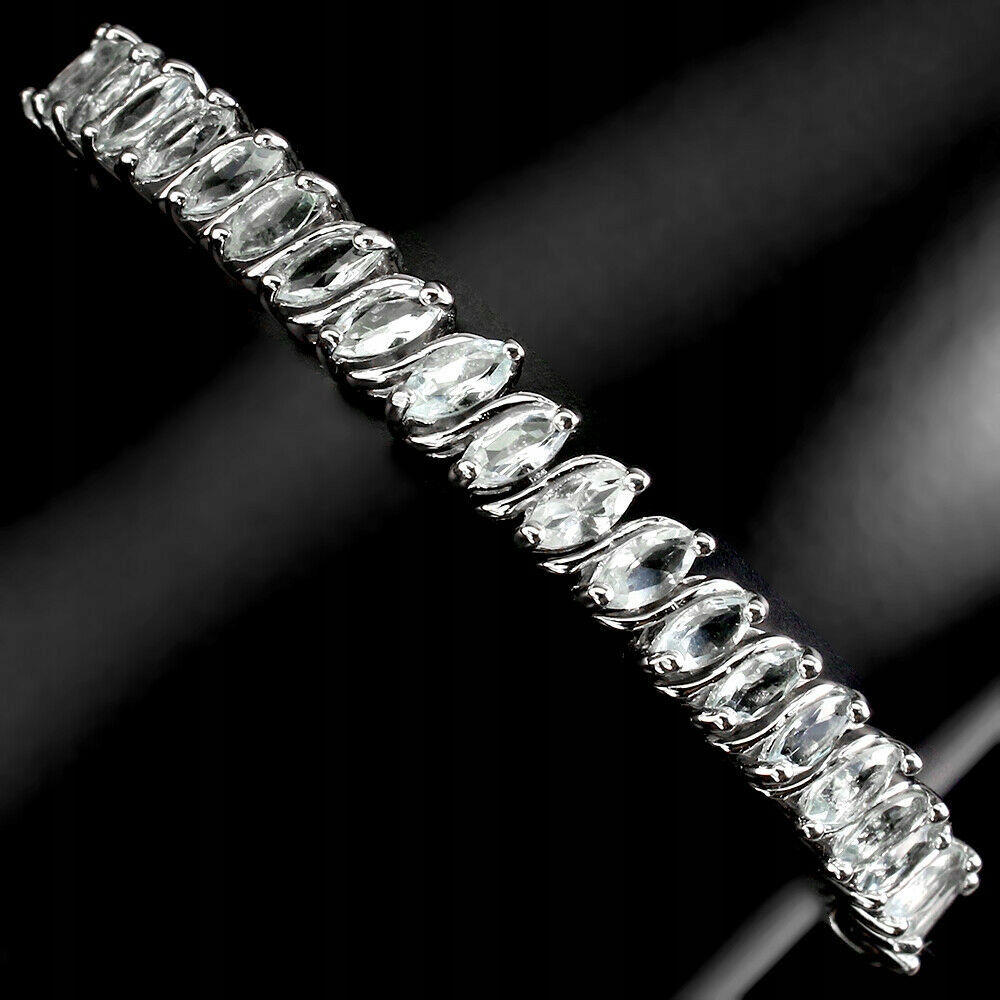 Wir bieten Ihnen ein neues, weiß 14K vergoldetes, Silber - 925 Armband mit natürlichen Aquamarinen an.