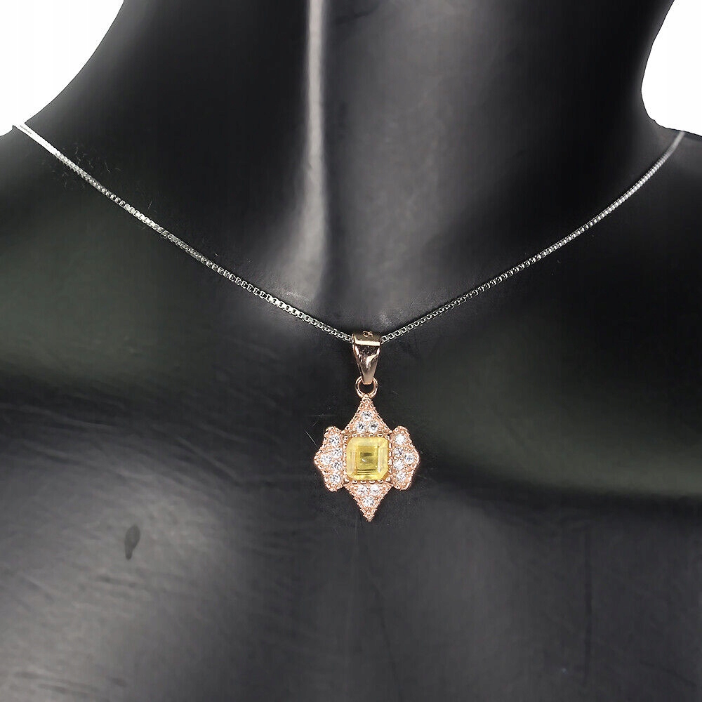 Wir bieten Ihnen eine neue, 14K rosévergoldete Silber-925-Halskette mit natürlichem gelben Saphir und Zirkonia an.