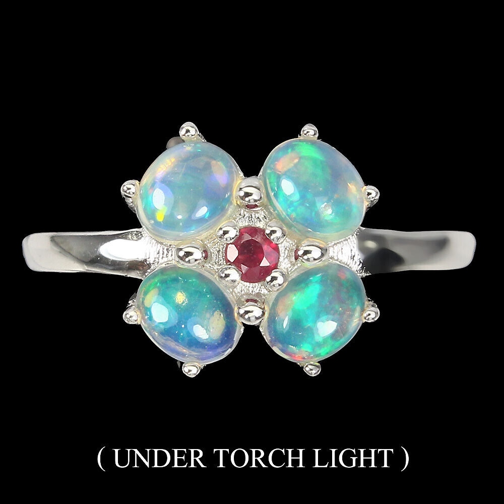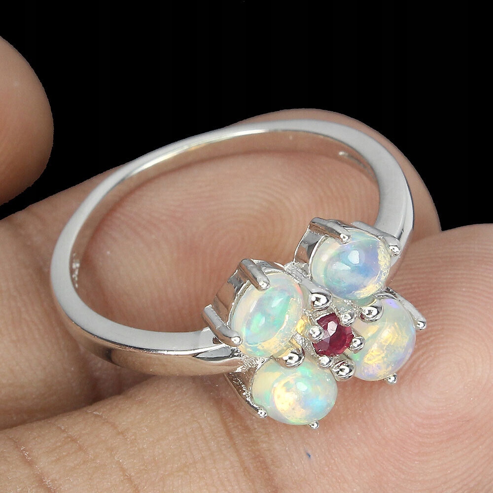 Zarte Ring Feueropale 925 Größe 14 Rubine