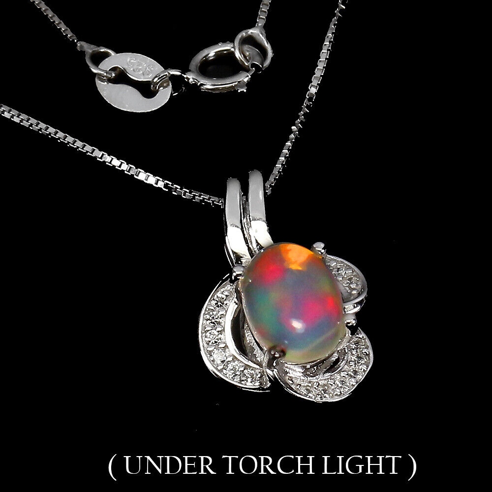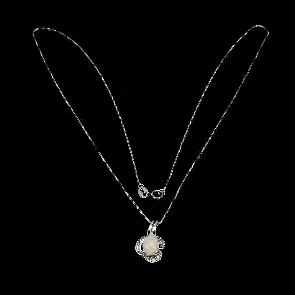 Wir bieten Ihnen eine neue, 14 Karat weiß vergoldete Halskette aus Silber - 925 mit natürlichem Feueropal und Zirkonia.