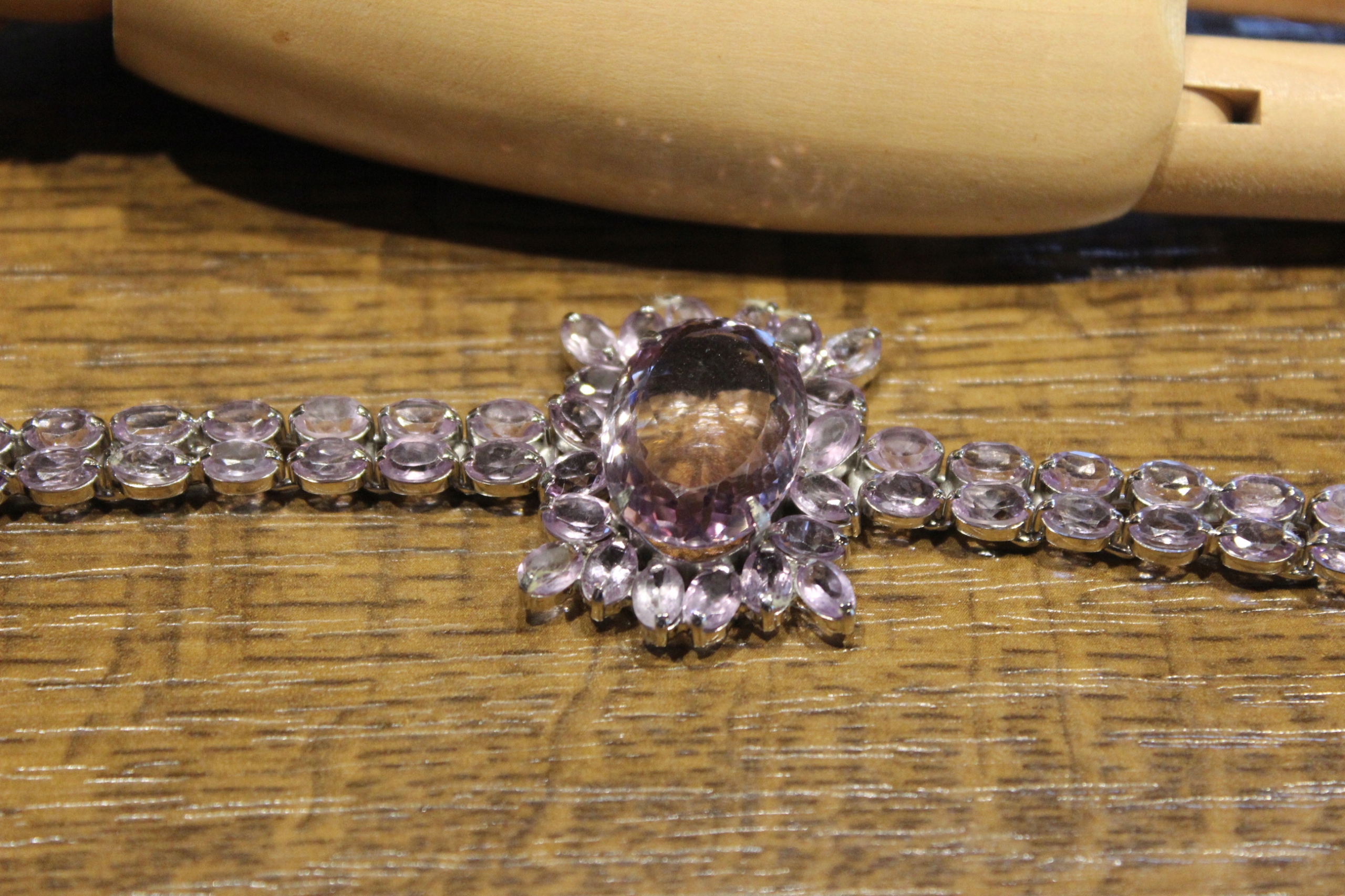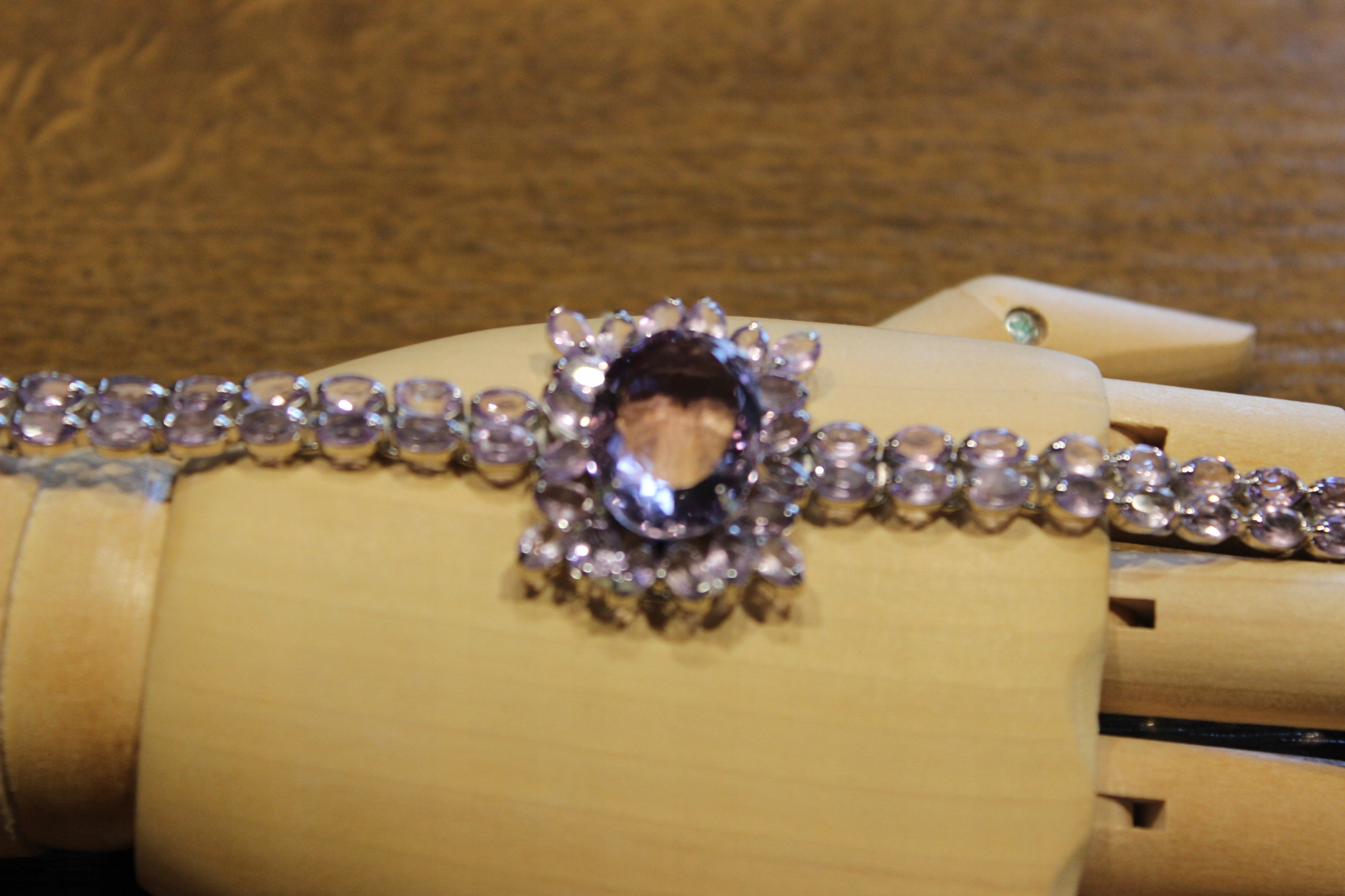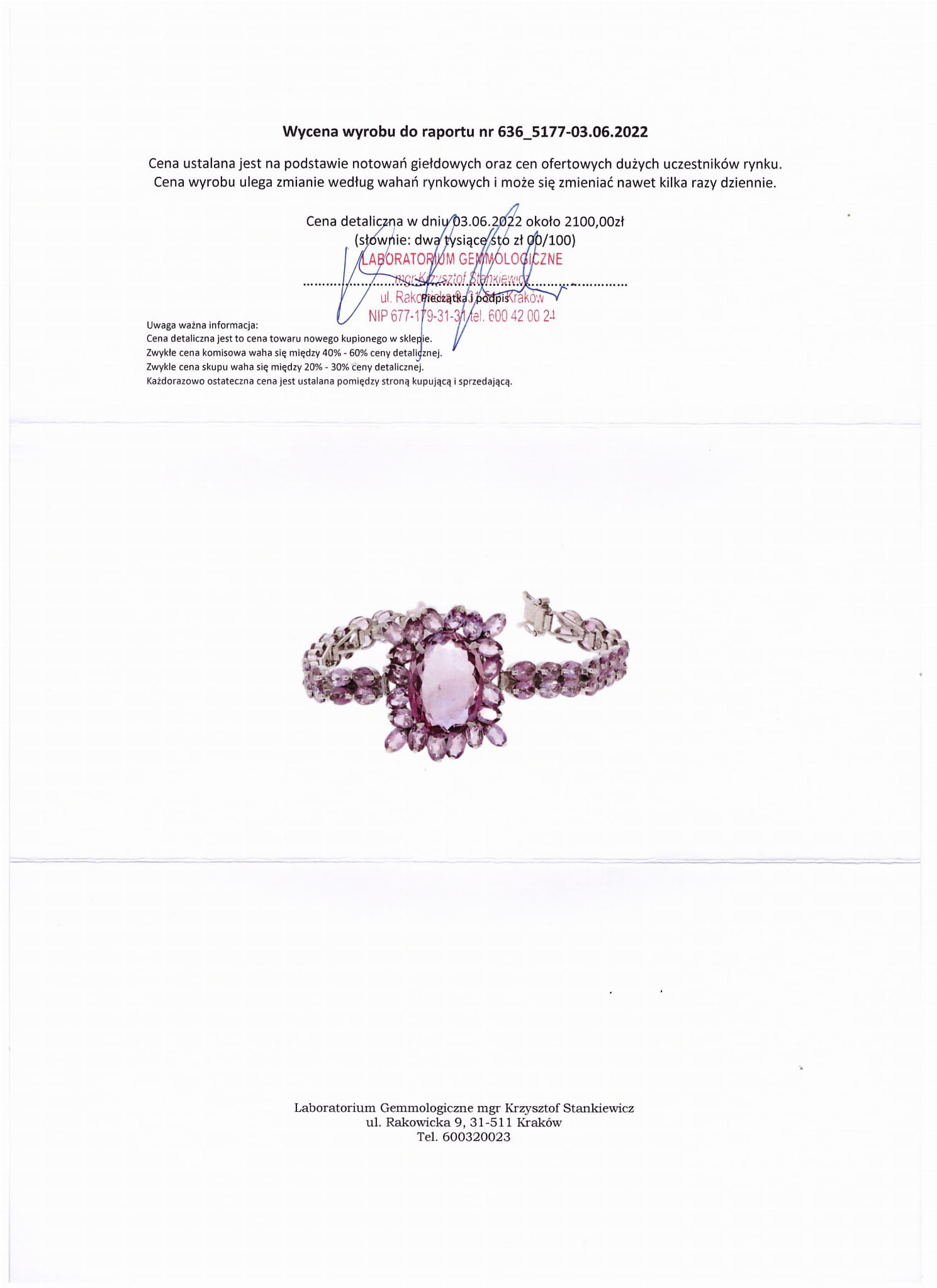 Ich verkaufe ein neues, 14 Karat weiß vergoldetes Silber - 925 (spektrometrisch ca. 0,854) Armband mit natürlichen Amethysten. Es hat ein Zertifikat und eine Schätzung für 2.100 PLN. Es ist handgefertigt.